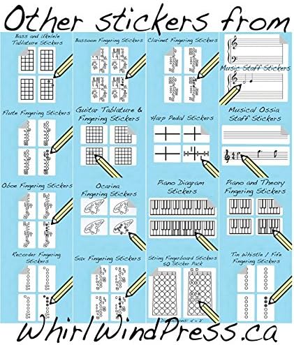 Great teaching and learning aid for music educators, students and aspiring musicians. Easy to use: - Peel off a sticker of your instrument - Stick it on your favourite music or in your notebook - Fill in that pesky fingering with a pen or pencil! Each pack comes with 250 stickers.