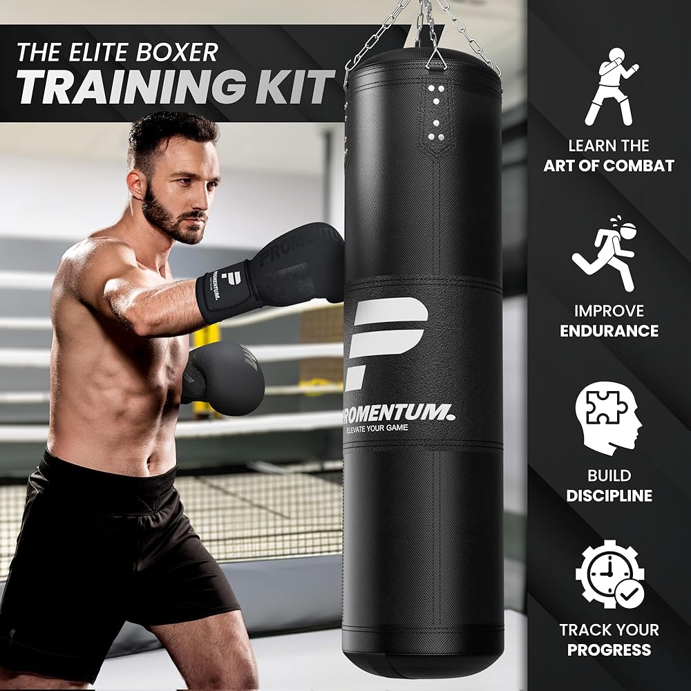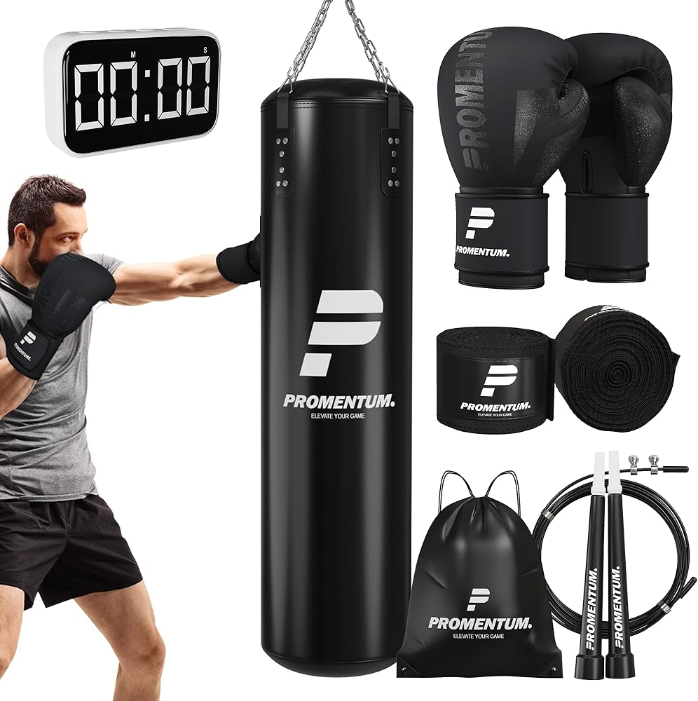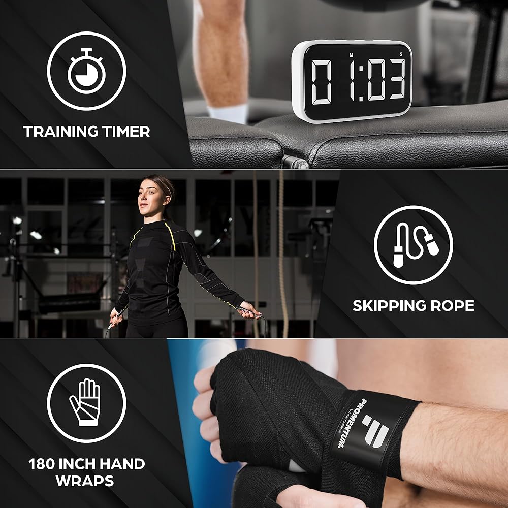 ارفع مستوى تدريبك مع مجموعة تعليق كيس اللكم من برومينتوم. تشتمل مجموعة الملاكمة للبالغين هذه على مؤقت تدريب فريد من نوعه لتتبع التمرين بدقة، مما يساعدك على البقاء على الهدف وتتبع تقدمك بعد كل جلسة.