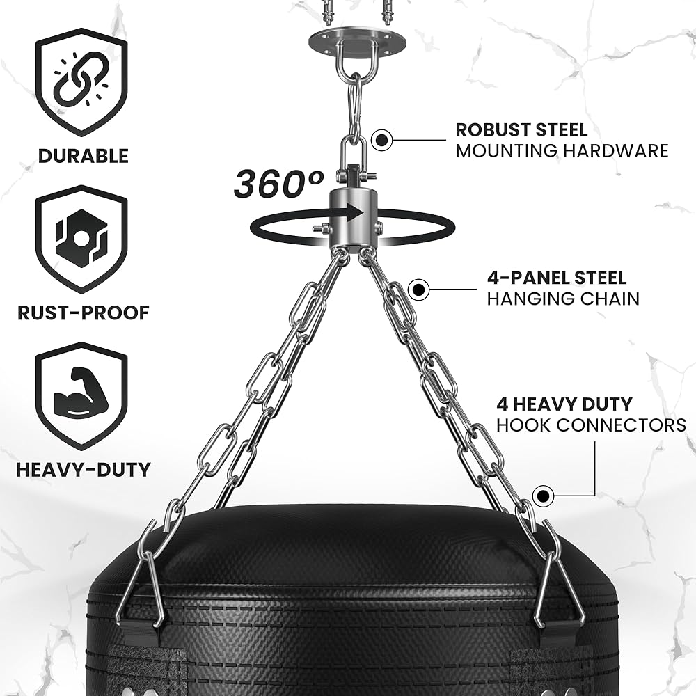 قابلة للتخصيص لكل مقاتل: سواء كنت مبتدئًا أو محترفًا، فإن الارتفاع القابل للتعديل لحقيبة الملاكمة هذه يلبي احتياجاتك التدريبية المحددة، بينما توفر شماعة الخطاف القوية 360 درجة دورانًا سلسًا وارتدادًا مع كل ضربة.