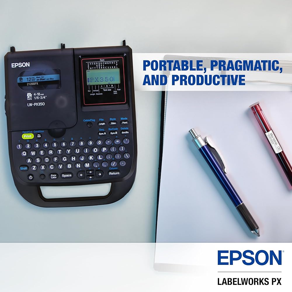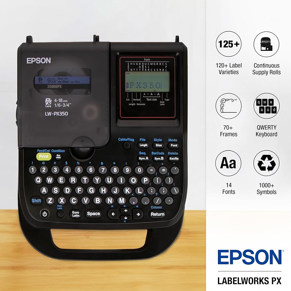 سهلة الاستخدام - هذه الطابعة تجعل الأمر سهلاً! يمكن لآلة الملصقات سهلة الاستخدام إنشاء ملصقات مخصصة ومفيدة في المنزل أو مكان العمل، صغيرة أو يصل عرضها إلى 3/4 بوصة (18 مم). تُستخدم بشكل شائع مع أشرطة Epson LABELWORKS PX: 212BWPX، و203B20BWPX، و205STBWPX، و208B20BWPX