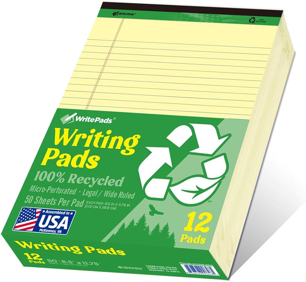 KAISA Recycled Paper Legal Pads 8.5x11.75 inch Writing Pads