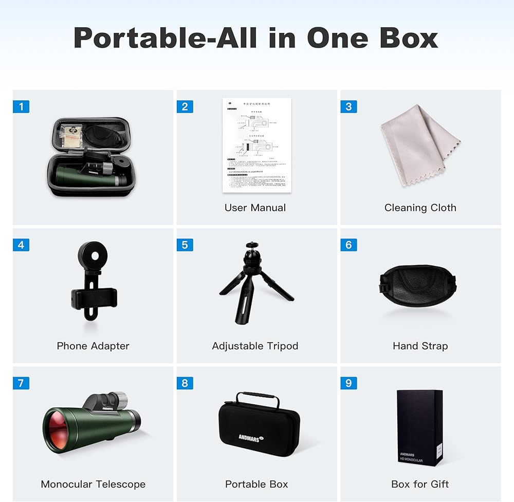 【صندوق محمول ومثالي للهدايا】حقيبة محمولة متينة أيضًا في العبوة، مصنوعة من مادة EVA، يمكنها حماية المنظار من الصدمات والاهتزاز والخدش وزيادة عمره الافتراضي. تصميم ممتاز وسهل الحمل، هدية مثالية للأصدقاء والعائلة.