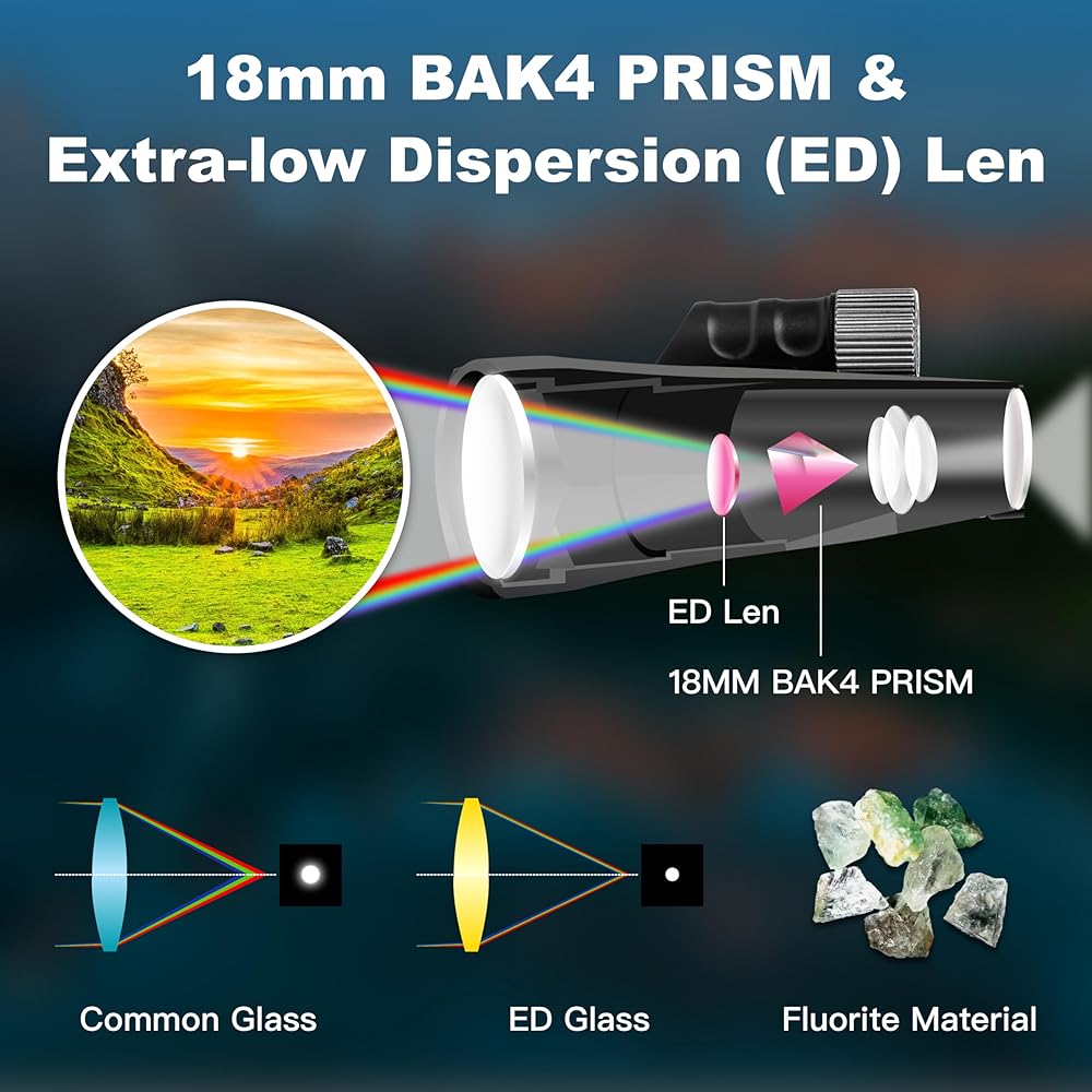 【حامل هاتف ذكي وحامل ثلاثي القوائم عالي الجودة】يأتي أحادي العين مع حامل هاتف ذكي عالي الجودة وحامل ثلاثي القوائم قوي يمكن تعديله بزوايا وطول مختلف حسب رغبتك. تصميم احترافي، سهل التركيب، ويضمن صورًا أكثر وضوحًا وإشراقًا وخالية من الاهتزاز. متوافق مع معظم أنواع الهواتف الذكية بما في ذلك على سبيل المثال لا الحصر iPhone وSamsung وSony وGoogle وغيرها.