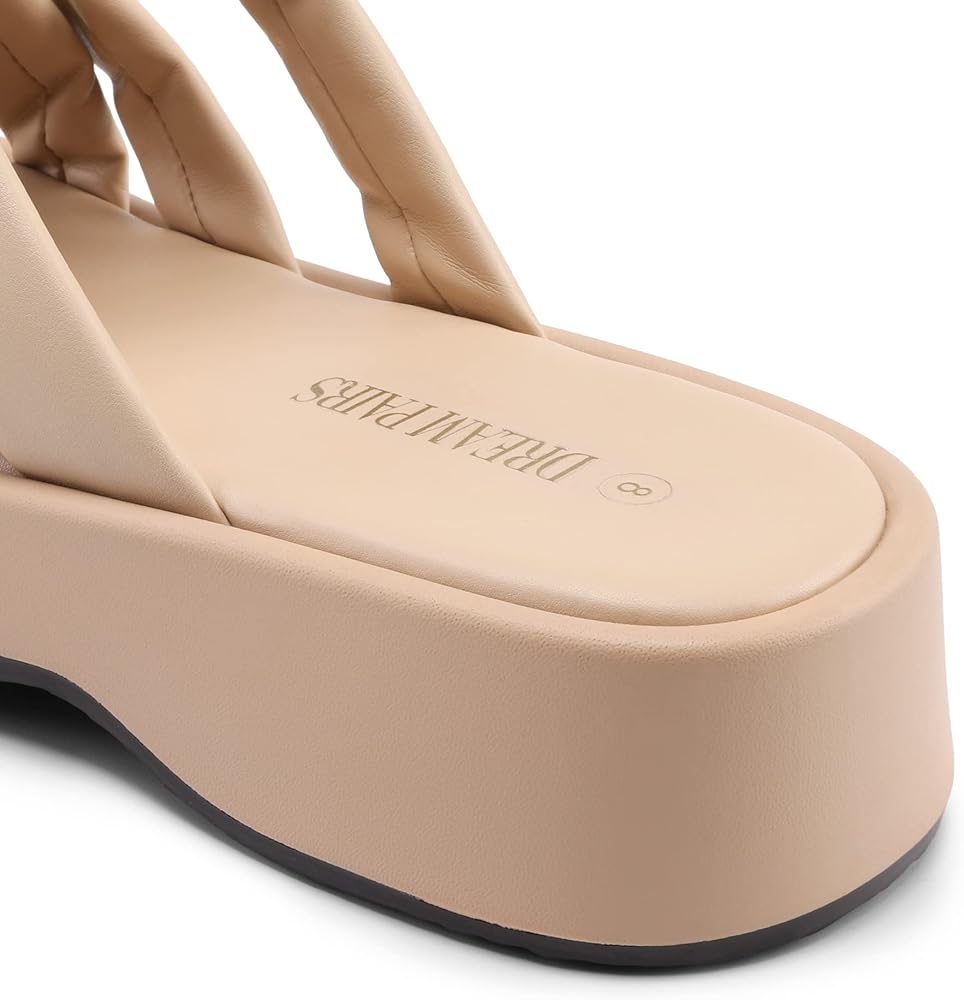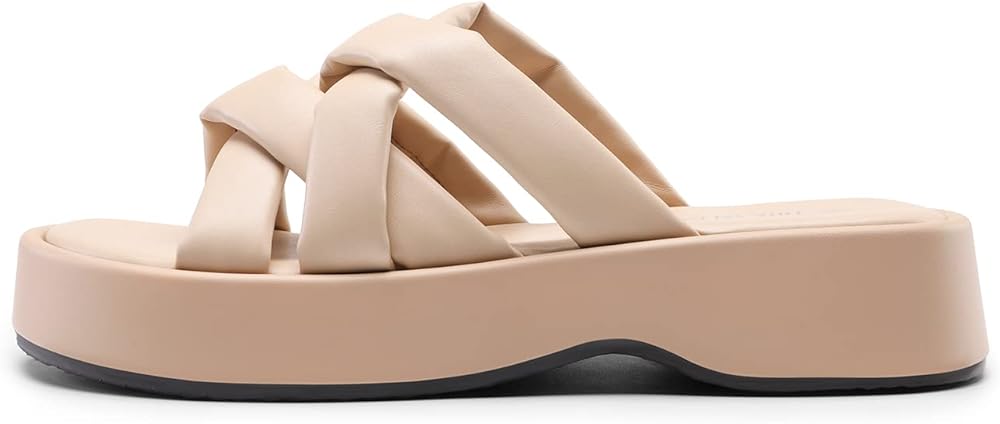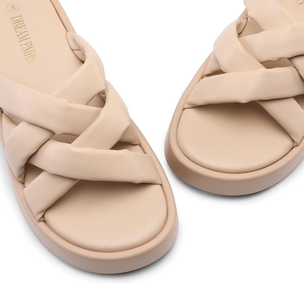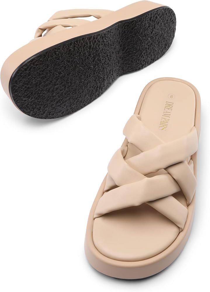 - أشرطة متقاطعة: ابدأ الصيف على القدم اليمنى مع هذه الصنادل ذات المنصة المنزلقة التي تحتوي على أشرطة PU عصرية منتفخة وناعمة ومبطنة بالرغوة.
