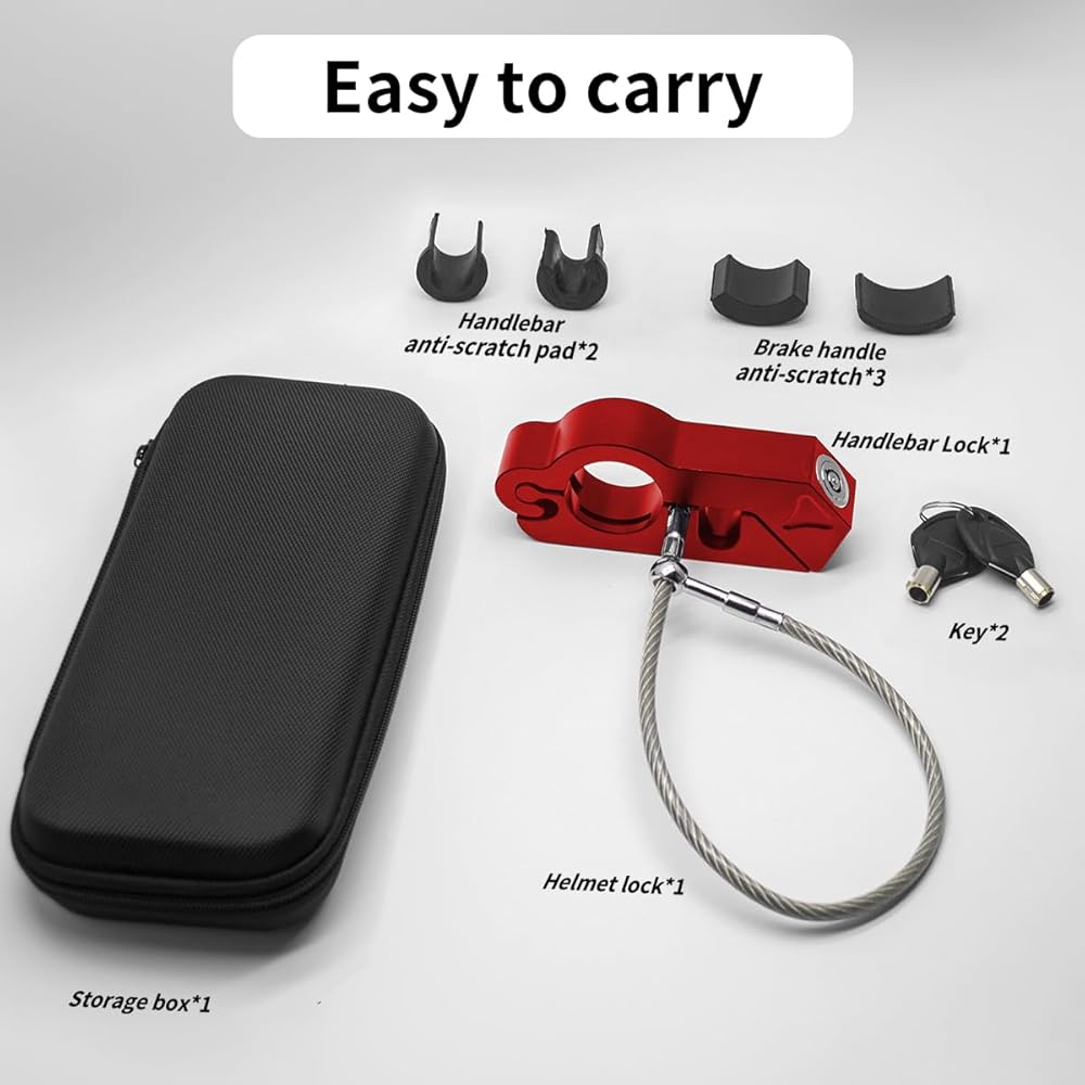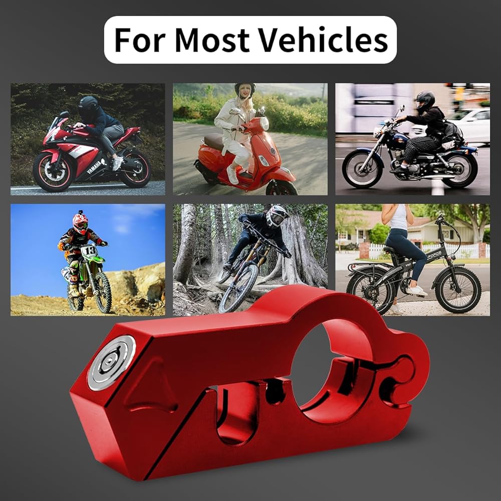 🔒🏍️تصميم مبتكر: مدمج مع قفل المقبض وقفل الخوذة، وظيفتين، ليس فقط قفل دراجتك النارية ولكن أيضًا قفل خوذتك. لم تعد بحاجة للقلق بشأن دراجتك النارية، ولم تعد بحاجة إلى حمل خوذة، حرر يديك حقًا