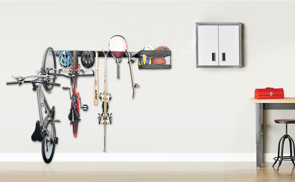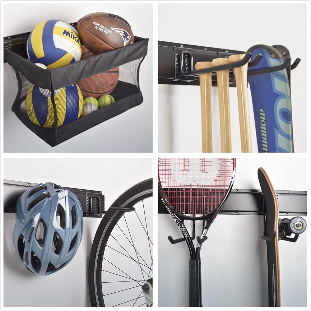 ✅[شديد التحمل ومتين] رف تخزين المعدات الرياضية المثبت على الحائط مصنوع من الفولاذ عالي القوة لتنظيم قوي وقوي. يبلغ طول فتحات التثبيت 16 بوصة! مثالية للأزرار، ويمكنها حمل ما يصل إلى 600 رطل. حامل متين مطلي بمسحوق وخطافات مغطاة بالمطاط. يقاوم الصدأ والتقطيع والتشقق.