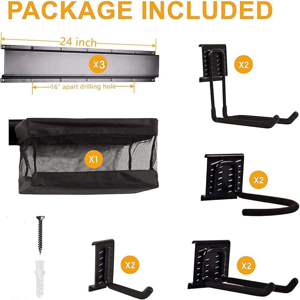 ✅【سهل التركيب/الاستخدام】التركيب سهل للغاية، منظم تخزين الألعاب الرياضية يحتوي على أدوات وتعليمات متضمنة (المسارات المثقوبة مسبقًا، والمسامير، وأدوات التثبيت). رف تخزين رياضي مثبت على الحائط قابل للتعديل يناسب مسافة 16 بوصة مع فتحات براغي متعددة. إذا لم تكن راضيًا عن منظم تخزين الألعاب الرياضية، فما عليك سوى إرسال بريد إلكتروني إلينا وسنقدم لك استرداد الأموال أو استبدال العناصر المعيبة بنسبة 100% دون طرح أي أسئلة .
