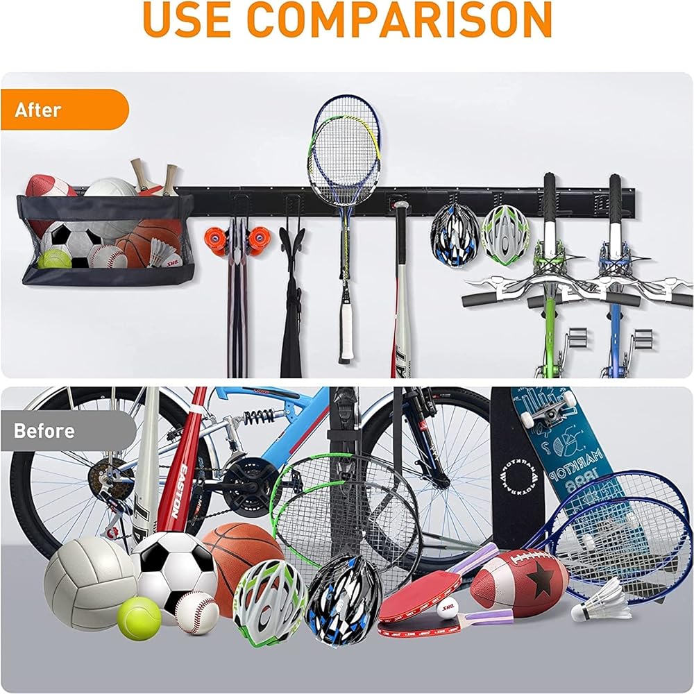 ✅【توفير مساحة الأرضية】يعد المنظم الرياضي للجراج طريقة رائعة لتنظيم الكرات الخارجية للأطفال وتخزين المعدات الرياضية بدلاً من توزيعها في جميع أنحاء المنزل والجراج. إنها تساعد على إخراج أشياء الأطفال من الأرض ويسهل العثور عليها. رائعة لتنظيم المرآب وتوفير مساحة الأرضية.