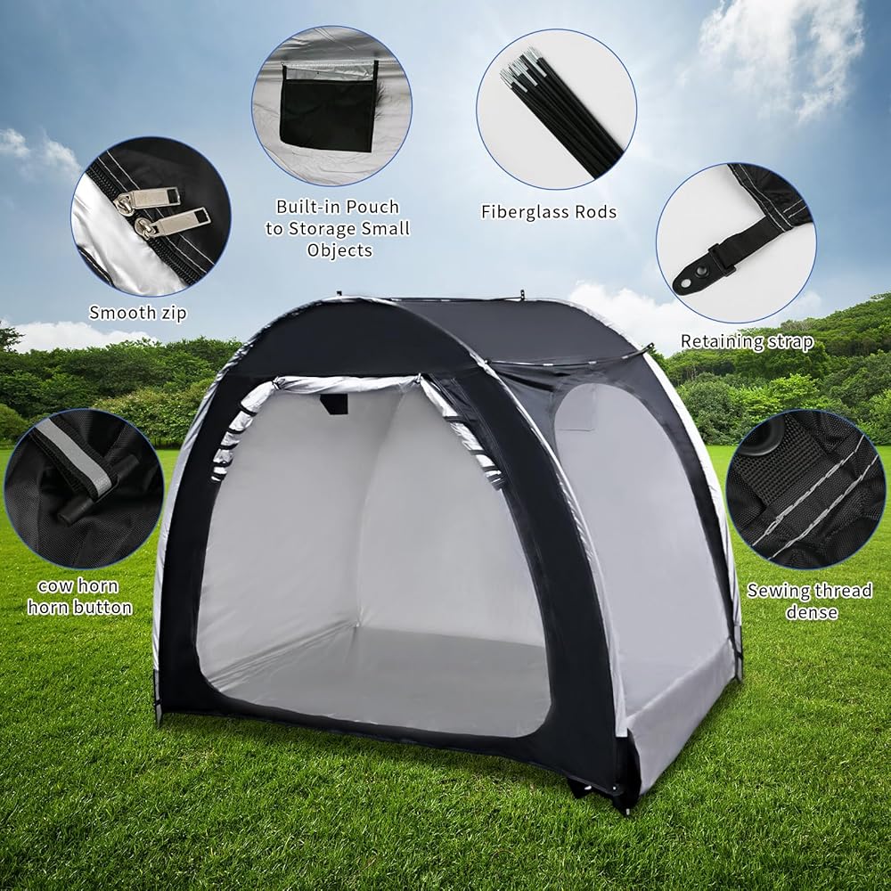 • 【تصميم إنساني】تصميم فتحة باب مزدوج، يمكن إغلاق السحاب الكامل بالكامل وتوفير حماية شاملة. تعمل جميع الأجهزة الطرفية ذات السحاب على زيادة الشريط المقاوم للماء، مما يمكن أن يحسن العزل المائي بشكل أفضل. تصميم النافذة الصغيرة مناسب للتهوية. قم بترقية الظفر السميك، والذي يمكن تثبيته بقوة على الأرض. حقيبة مدمجة لتخزين الأشياء الصغيرة.