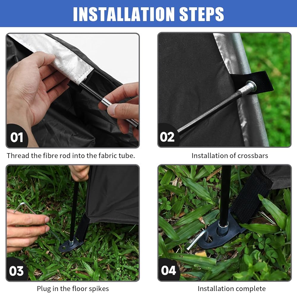 • 【سهلة التركيب والثبات القوي】 يستغرق تجميع الخيمة 10 دقائق فقط، بدون أي أدوات، تمامًا مثل الخيمة العادية، التثبيت سريع وسهل. ما عليك سوى فرد الإطار وإدخاله في الفجوة المحجوزة في الخيمة، وثني الإطار على شكل قوس بقوة قليلة واستخدام إطار أقصر لفتح العرض للاستخدام. مجهزة بأربعة مسامير أرضية، يمكن تثبيت خيمة التخزين بشكل جيد واستخدامها حتى في الأحوال الجوية السيئة.