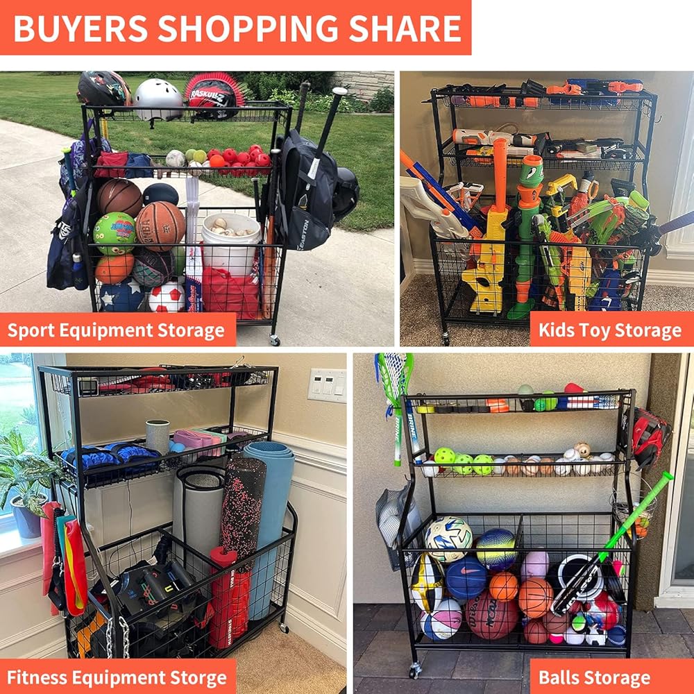 🏆【𝗪𝗜𝗗𝗘𝗟𝗬 𝗨𝗦𝗘𝗗 𝗠𝗔𝗡𝗬 𝗢𝗖𝗖𝗔𝗦𝗜𝗢𝗡𝗦 】: يعد تخزين المعدات الرياضية متعدد الاستخدامات هذا رائعًا للجراجات والطابق السفلي وصالة الألعاب الرياضية والمدرسة المنزلية والنهار غرفة الرعاية ومرحلة ما قبل المدرسة وغرفة الأطفال لتنظيم أفضل لمعداتك الرياضية وألعاب الأطفال ومعدات السباحة وغيرها من الأشياء الفوضوية. رائعة لتخزين المرآب ومنظم الألعاب.