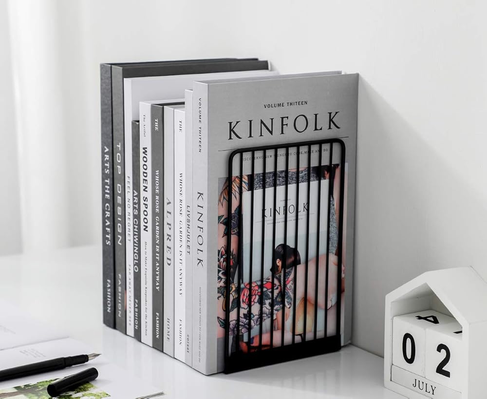 Heavy Duty Metal Bookends: All metal construction makes the black