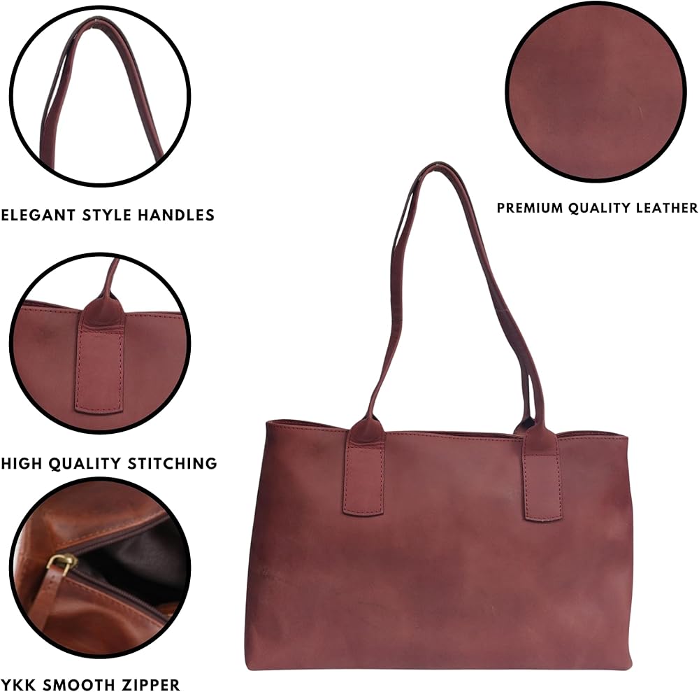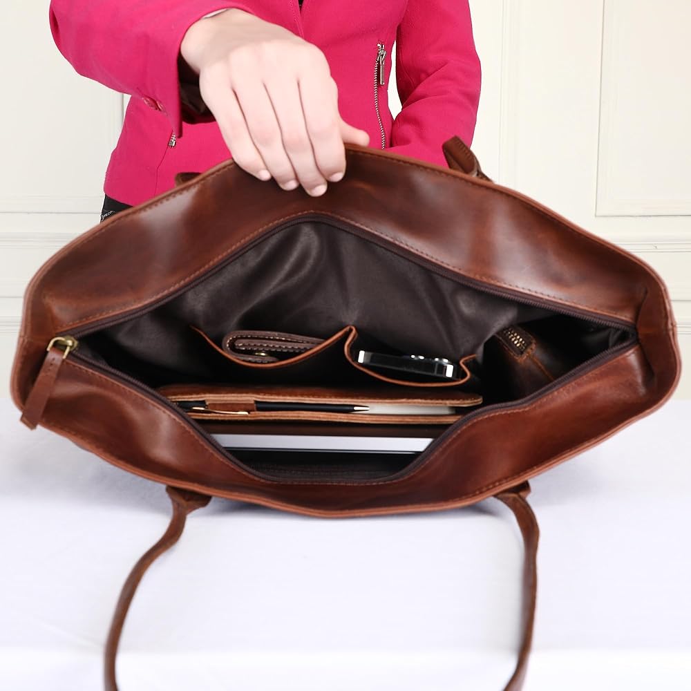 STURDY REAL LEATHER: Made with top-grade genuine leather, this 21-inch laptop tote bag is built to last, offering exceptional durability against daily use and wear. The bag's vintage style brings a classic and enduring elegance to your professional attire.