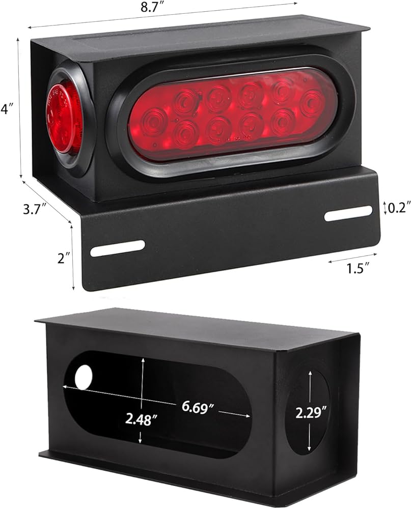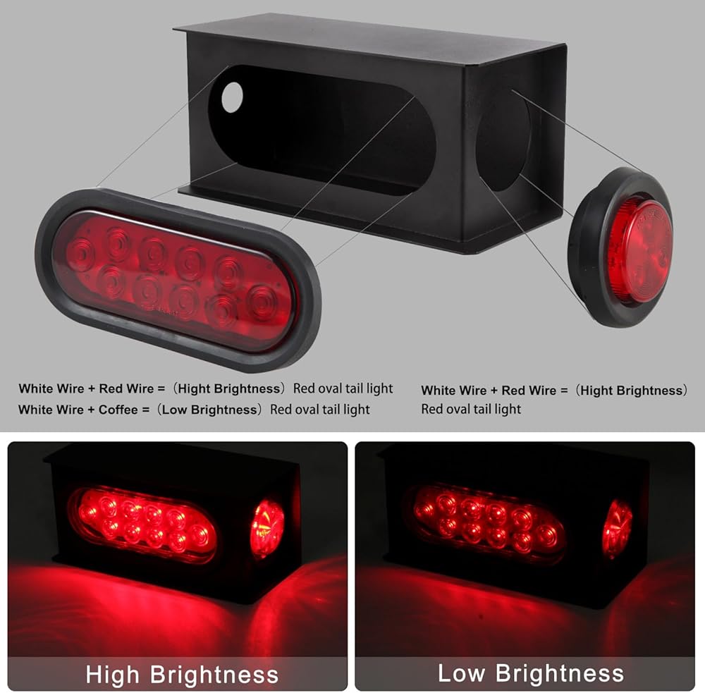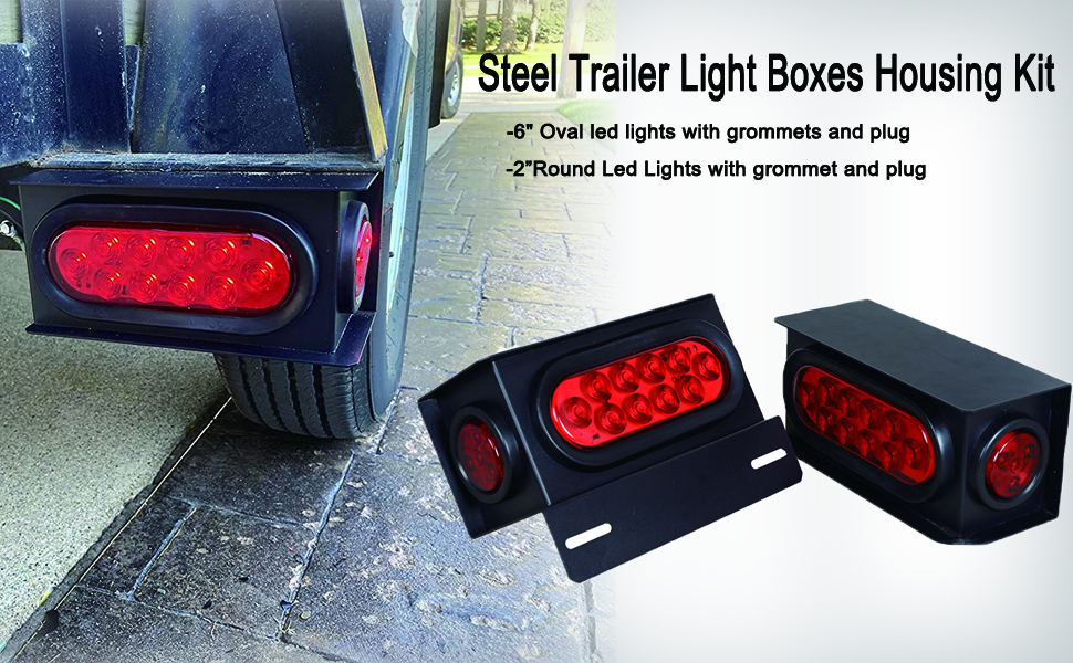 【تتضمن المجموعة 2 قطعة من صناديق إضاءة المقطورة الفولاذية الملحومة. مصابيح خلفية بيضاوية مثبتة مسبقًا مقاس 6 بوصات وأضواء علامة جانبية مستديرة LED مقاس 2 بوصة مع حلقات مطاطية وتركيب لوحة الترخيص. متين ومقاوم لجميع عوامل الطقس.