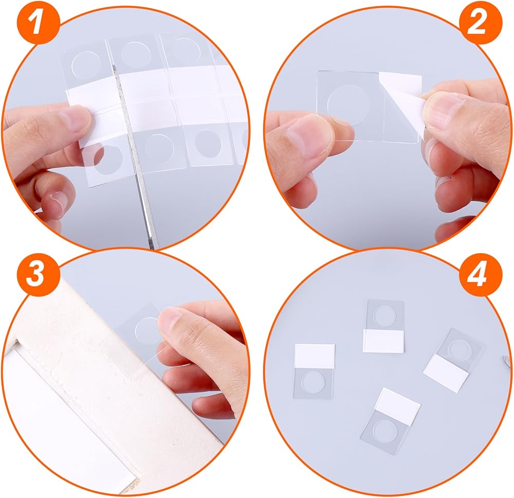 【Product Size】The hang tabs sticky tabs size is 1.2 × 0.9 inches/ 3.2 × 2.3cm, and the diameter of the round hole is 0.5inches /1.3cm. Although it is small, it has a strong load-bearing capacity and to meet your needs in hanging lightweight products. You can carry them around conveniently without taking up too much space.
