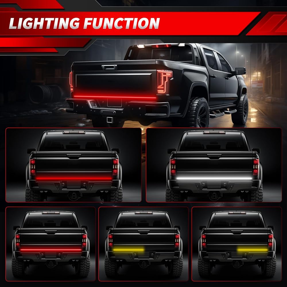 5 وظائف قوية - تشمل الوظائف: ضوء الفرامل الأحمر، ضوء التشغيل، إشارات الانعطاف الكهرمانية المتسلسلة لليسار/اليمين، الضوء العكسي الأبيض، وضوء وامض مزدوج. قم بتنبيه السائقين الخلفيين بأمان لرؤيتك على الطريق وخارجه