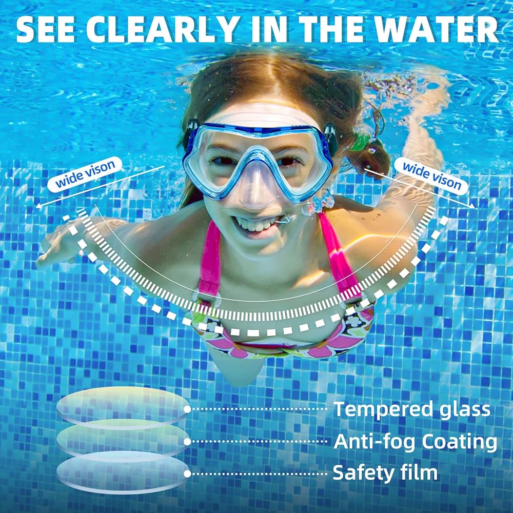 【عدسات زجاجية مقواة متقدمة】عدسات نظارات السباحة Seago مصنوعة من الزجاج المقسى مع طبقة أمان تتميز بمقاومة جيدة للصدمات ومقاومة للخدش. يمكن لفيلم الأمان أن يمنع العدسات الزجاجية من التشتت عند كسرها عن طريق الخطأ، وأكثر أمانًا وموثوقية. دع أطفالك يلعبون دون ضبط النفس.