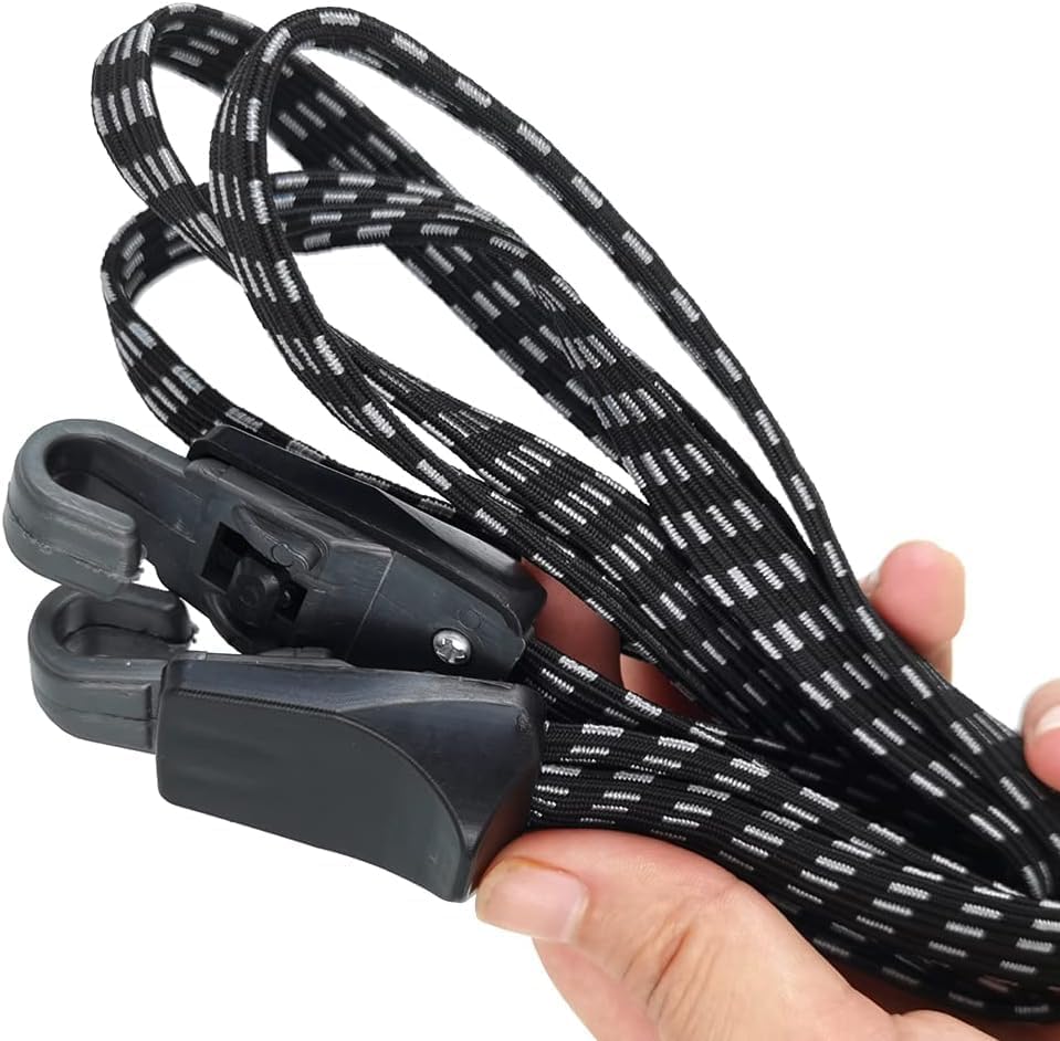 Flat Design: The width of each bike bungee cord is about 1cm. This flat design can effectively disperse the pressure, and avoid damage to luggage or cargo.