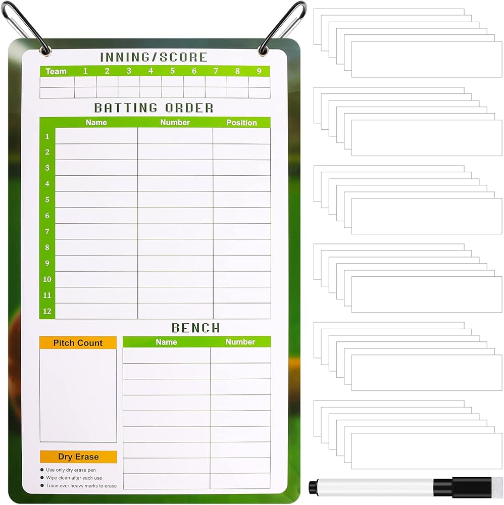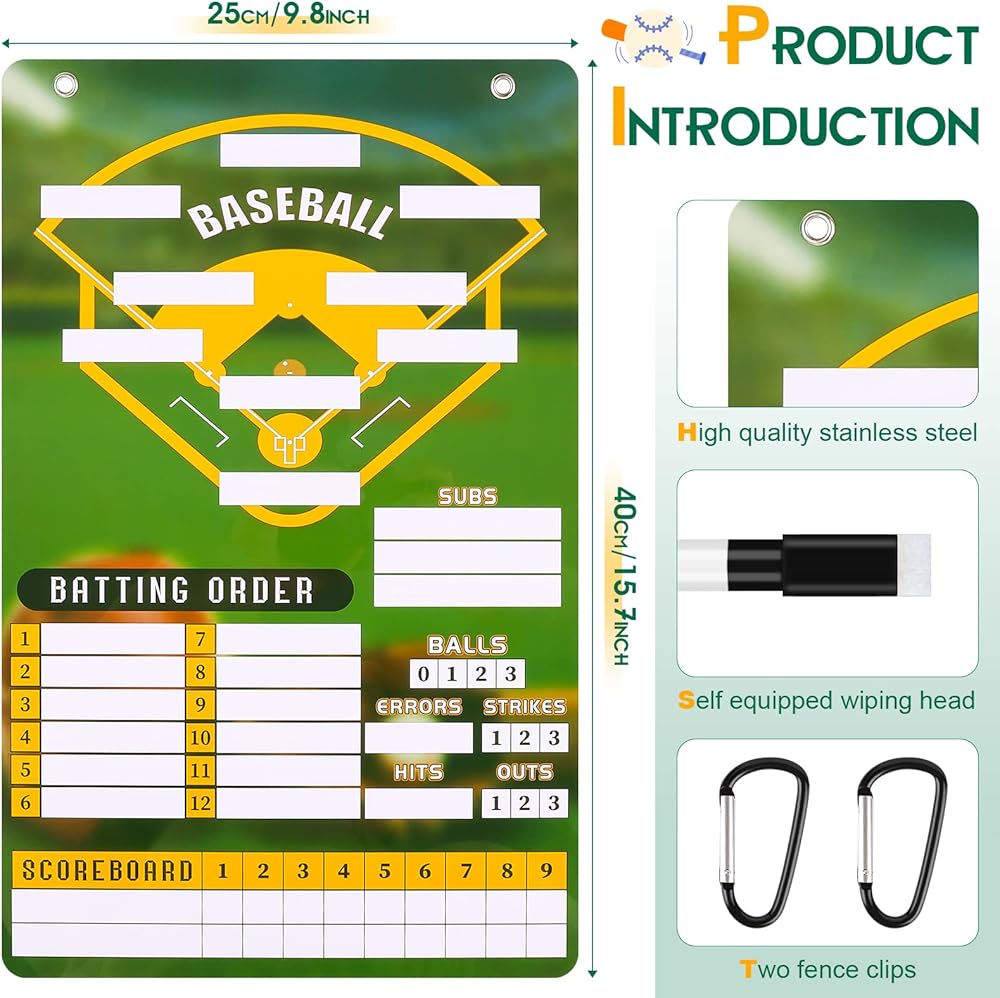 لوحة تدريب مغناطيسية: سوف تحصل على لوحة تشكيلة بيسبول مغناطيسية، و58 بطاقة تشكيلة مغناطيسية، وعلامة للمسح الجاف. السطح المغناطيسي الموجود على لوحة التدريب صديق للمسح الجاف، مما يسمح للمدربين بكتابة خطط اللعب ومسحها بسرعة. يتيح ذلك الاستخدام الفعال للوقت أثناء المباريات أو التدريبات ويساعد المدربين على التواصل بشكل أكثر فعالية مع اللاعبين.