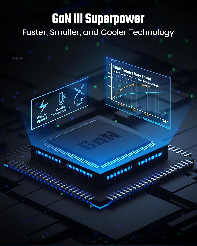 شاحن 100 واط 3 USB: بإجمالي إخراج 100 واط، 2 USB-C و1 USB-A يشحن ما يصل إلى 3 إلكترونيات في نفس الوقت، بما في ذلك الكمبيوتر المحمول عبر USB-C1. بالمقارنة مع أجهزة الشحن الأصلية (إن وجدت)، تعمل مجموعة شاحن USB بقوة 100 واط هذه على تعزيز سرعة الشحن بنسبة 50% وتقليل عدد المحولات المطلوبة إلى محول واحد.