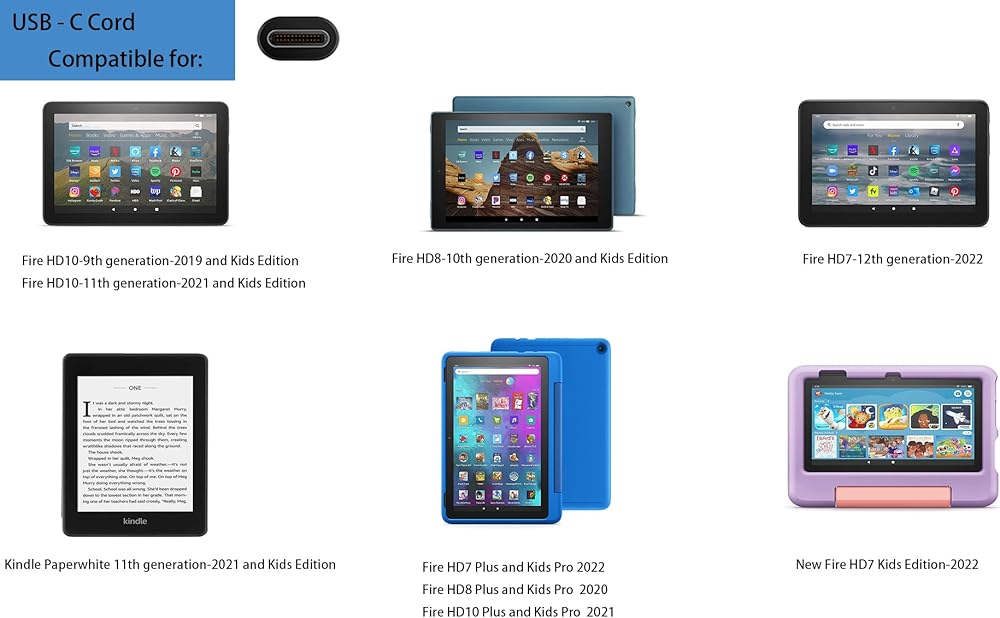 Equipped with USB C Charging Cable ,Also Compatible for New Fire HD 7 HD7 Plus and Kids Edition (12th generation - 2022release)
