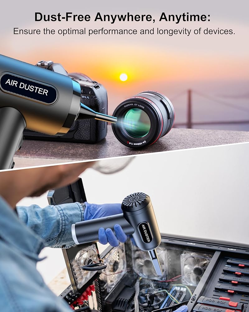 [صديقة للبيئة وآمنة] توفر منفضة الهواء هذه نفحات نقية خالية من الرطوبة، وهي صديقة للبيئة وموفرة للطاقة. إنها قابلة لإعادة الاستخدام، مما يحمي أجهزتك الإلكترونية من التلف المحتمل للسوائل. يضمن دمج تقنية التبريد التلقائي تنظيفًا آمنًا وفعالاً، ويمنع ارتفاع درجة الحرارة أثناء الاستخدام الممتد.