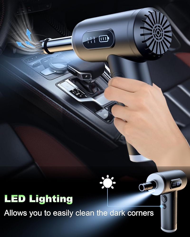 [متعدد الاستخدامات وإضاءة LED] مُجهز بـ 5 فوهات و3 فرش، منفضة الهواء المضغوط مثالية لسيناريوهات مختلفة، بدءًا من تنظيف الأجهزة الإلكترونية وحتى تنظيف شعر الحيوانات الأليفة، أو نفخ حلقات السباحة، أو النفخ لإشعال النار. يعمل ضوء LED على تحسين الرؤية، مما يجعل من السهل تنظيفه في المناطق ذات الإضاءة الخافتة.