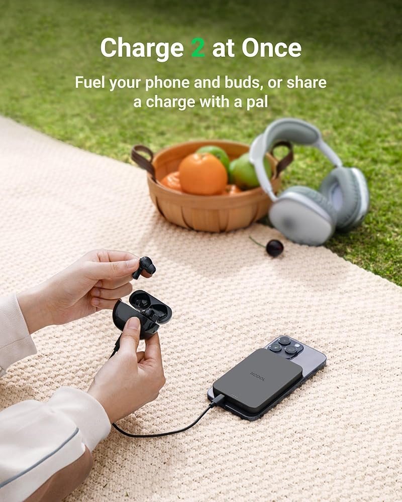 حل الشحن المتزامن: يمكنك تشغيل الطاقة في المنزل أو أثناء التنقل باستخدام بنك الطاقة الذي يعمل بالشحن المار. قم بشحن جهازك أثناء إعادة شحن شاحن الهاتف المغناطيسي، واشحن جهازين في وقت واحد لمشاركة الطاقة مع الآخرين عند الحاجة.