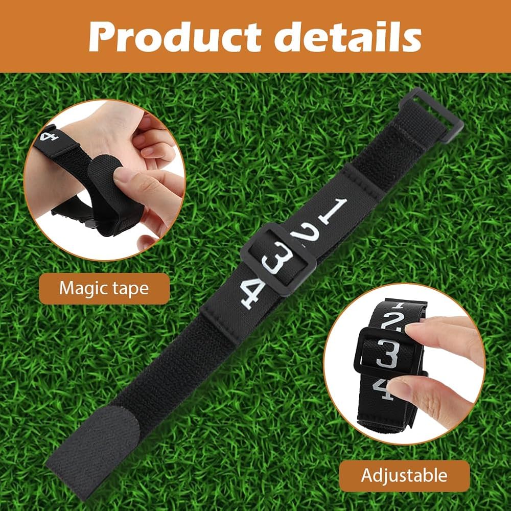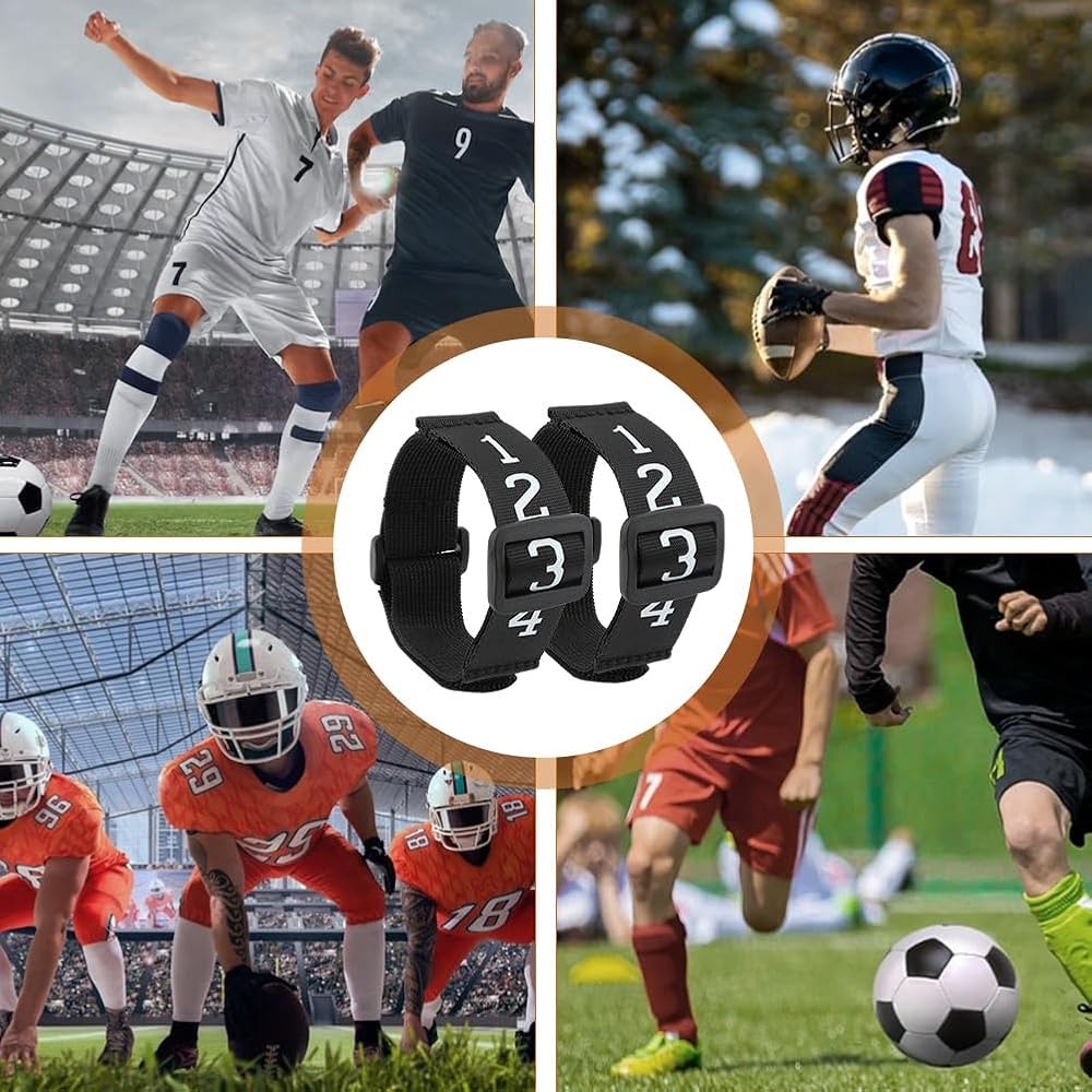 【NUMBERED WRIST DOWN INDICATOR】The polyester football drop indicator is comfortable to wear and adjusts to your wrist size, strong and durable, and you can easily move the black sliding buckleto change numbers throughout the game, easy to use.