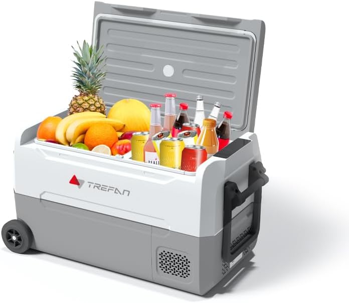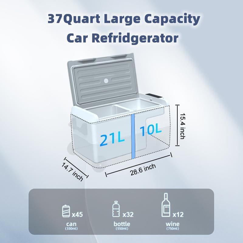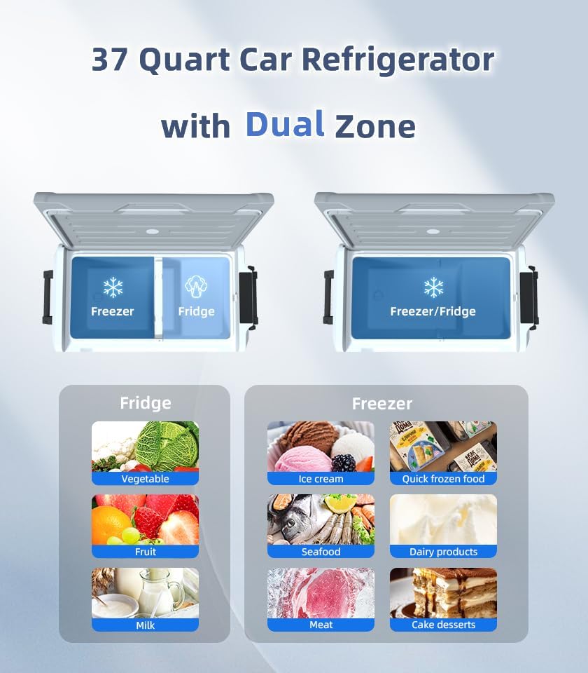 ثلاجة سيارة سعة 35 لتر/37 لتر - مبرد 4℉~68℉ 12 فولت مع منطقة مزدوجة وضاغط 110-240 فولت تيار متردد 12 فولت/24 فولت تيار مستمر، ثلاجة سيارة RV للسفر والتخييم وركوب القوارب