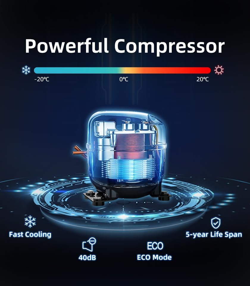 • 【استهلاك منخفض للطاقة بقدرة 42 وات】تم ضبط وضعين لمبرد ثلاجة تريفان، ووضع MAX ووضع ECO. لا تكلف سوى أقل من 42 وات عندما تعمل ثلاجة الفريزر 12 فولت لمدة ساعة في وضع ECO و45 وات في وضع MAX. يمكنك إما اختيار الوضع ECO للمبرد المبرد لتوفير الطاقة، أو الوضع MAX للتبريد الأسرع، وكلاهما موفر للطاقة.