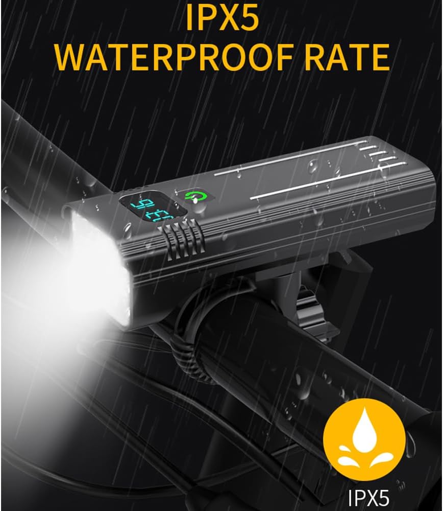 【IPX5 مقاوم للماء】: الضوء الأمامي المقاوم للماء IPX5 يتحمل جميع الأحوال الجوية السيئة. 10000 لومن تسمح لك برؤية 500 ~ 1000 متر بوضوح، وتحسين الرؤية والسلامة.