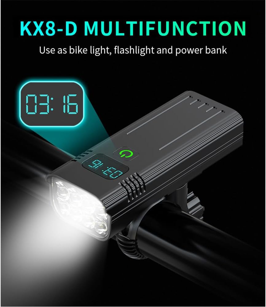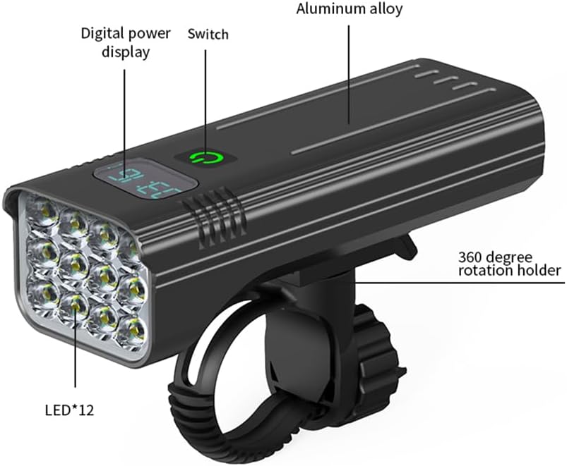 【مصباح يدوي للدراجة عالي التجويف】تصميم رأس مصباح 12، مصباح يدوي للدراجة بقوة 10000 لومن، أضواء الدراجة للركوب الليلي الأمامي.