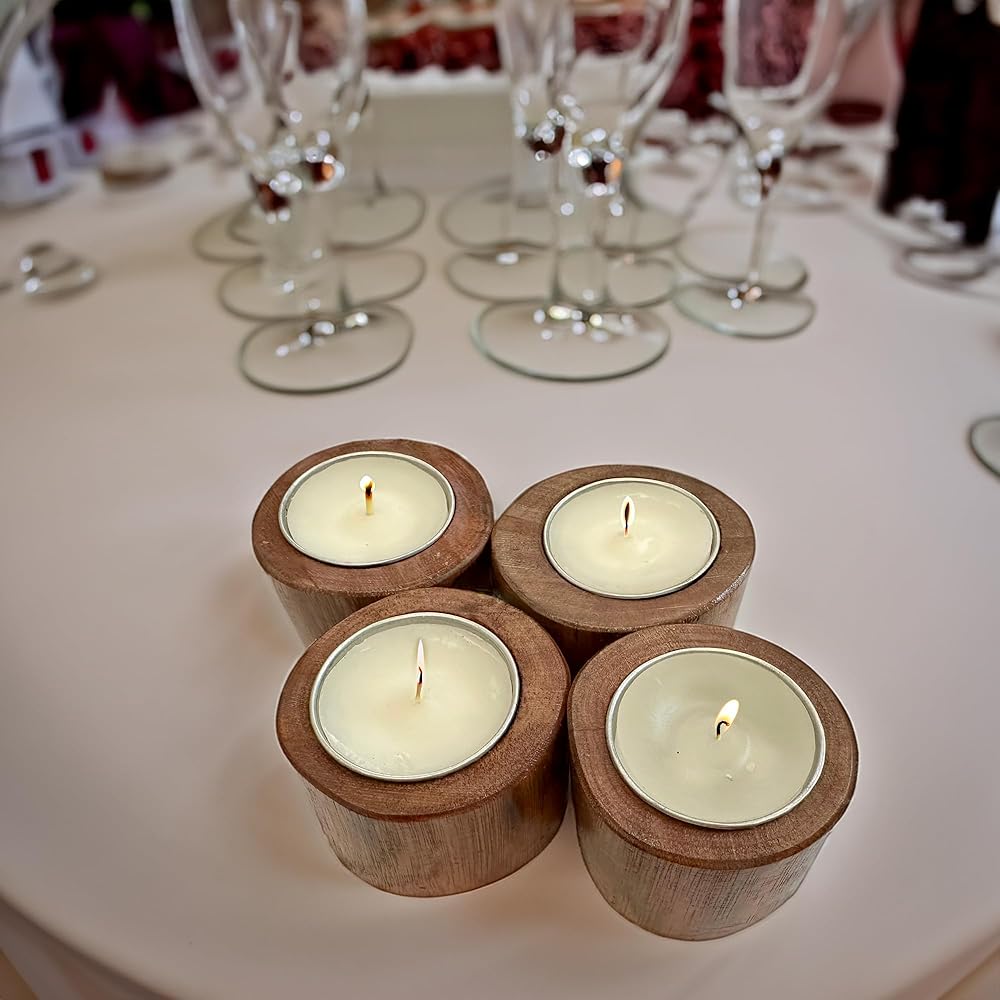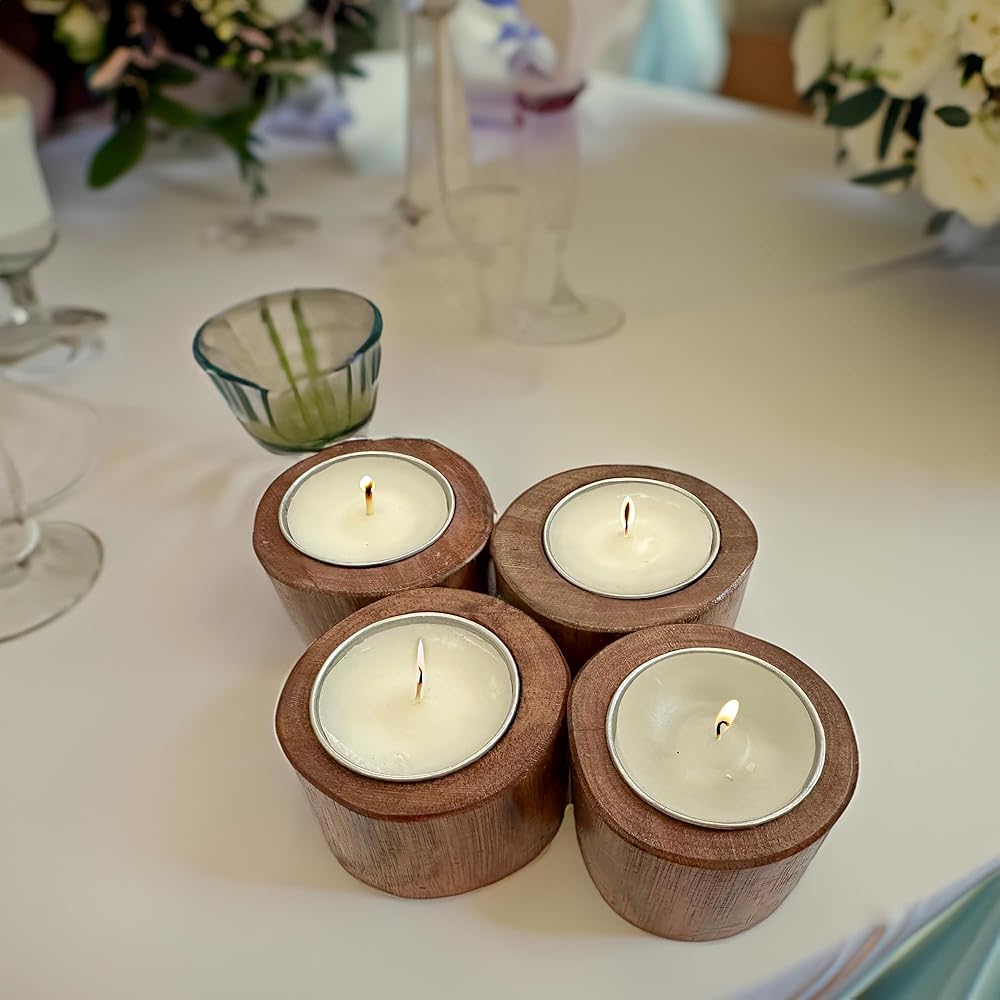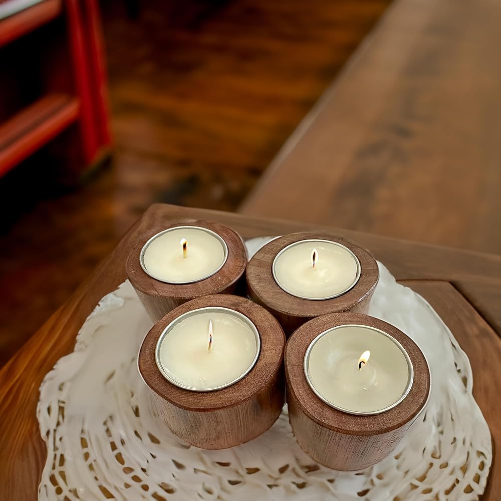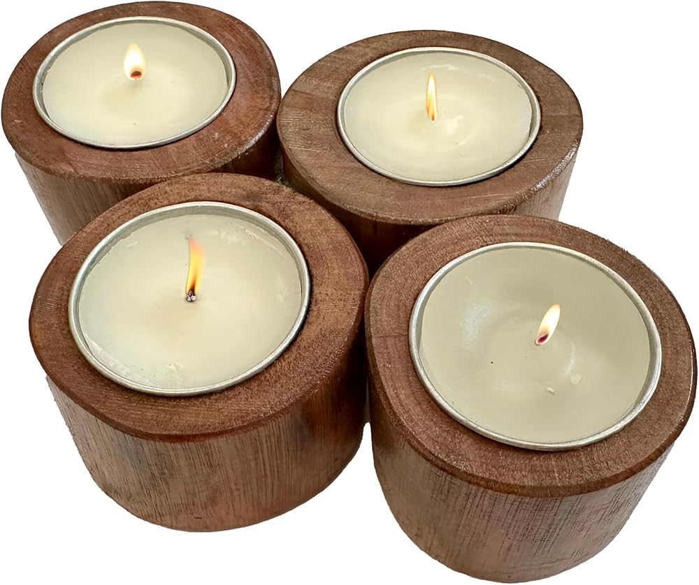 OMetaWood Handmade Diwali Christmas Wedding Gift Decoration Drift Wood Set of 4 Round Tealights Candle Holders