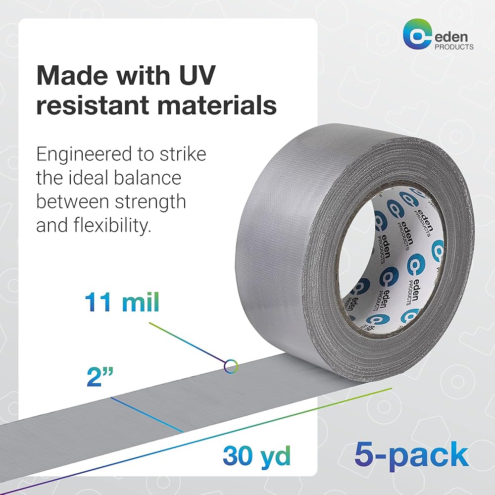 شريط لاصق عالي التحمل مقاوم للماء 5 عبوات - شريط لاصق رمادي قوي بقوة قصوى - فضي 30 ياردة × 2 بوصة، للاستخدام الداخلي والخارجي، بدون بقايا، تمزيق باليد - جميع الأحوال الجوية من EdenProducts