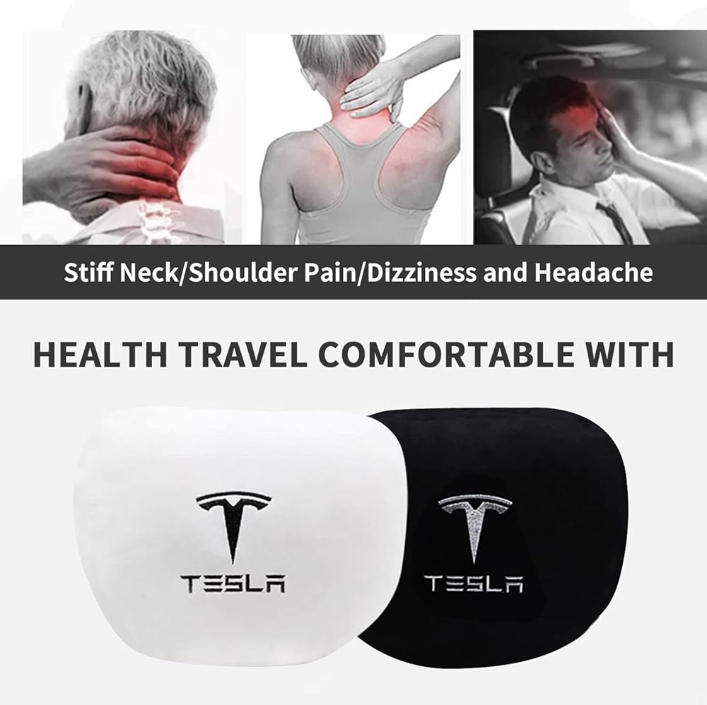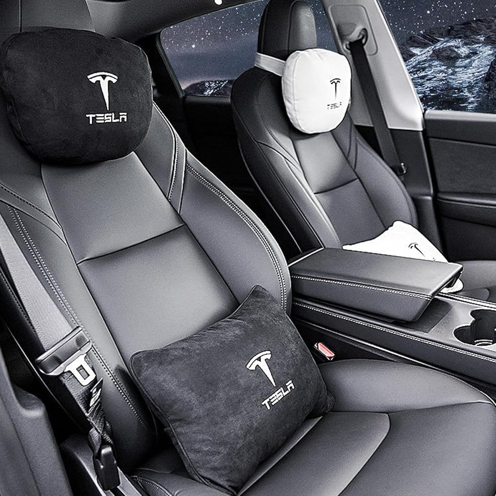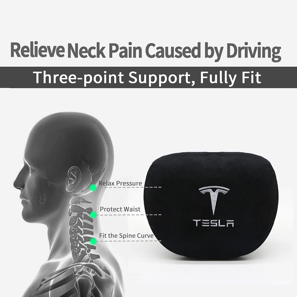 وسادة KIKIMO Tesla للطراز 3/Y/S/X، ملحقات طراز Tesla 3، ملحقات Tesla Model Y، وسادة رقبة السيارة الناعمة، وسادة مسند رأس السيارة المخصصة، وسادة الرقبة للسفر، أسود
