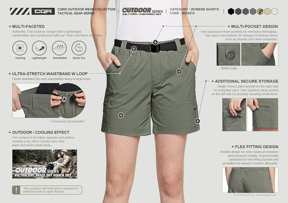 - شورت CQR للسيدات للاستخدام الخارجي مصمم لجميع الأنشطة والرياضات الخارجية.