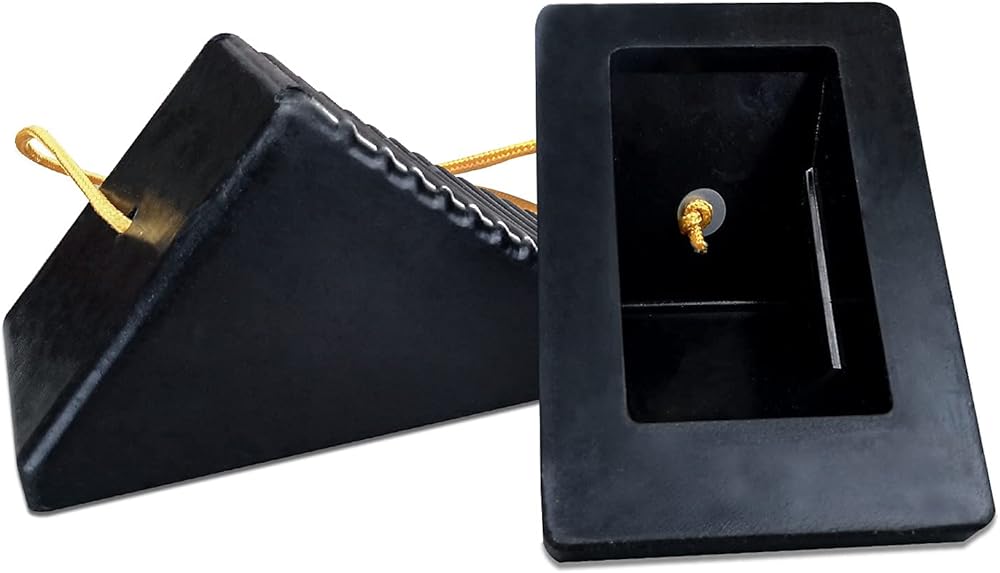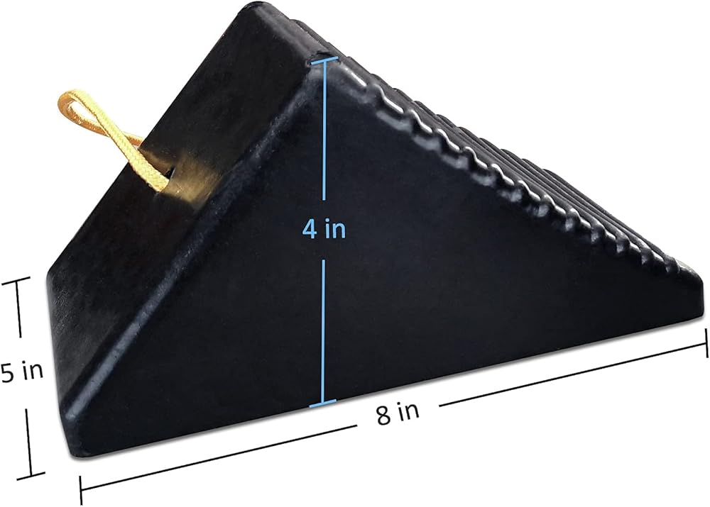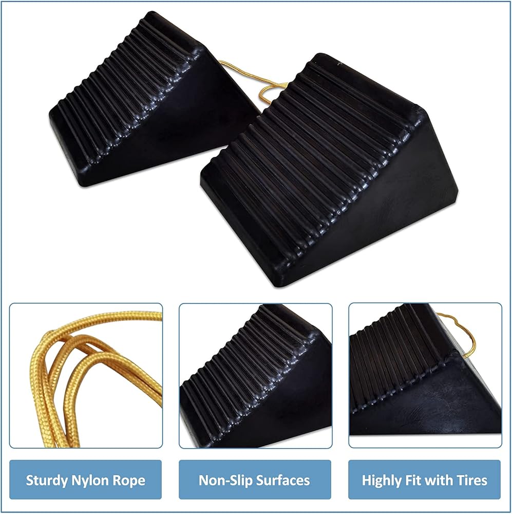 عجلة مطاطية مع مجموعة حبال مكونة من 4 قطع، عوارض إطارات RV شديدة التحمل لمقطورات السفر والتخييم والطائرات الصغيرة والسيارات والدراجات النارية والشاحنات 4 عبوات، طول 8 بوصة × عرض 5 بوصة × ارتفاع 4 بوصة