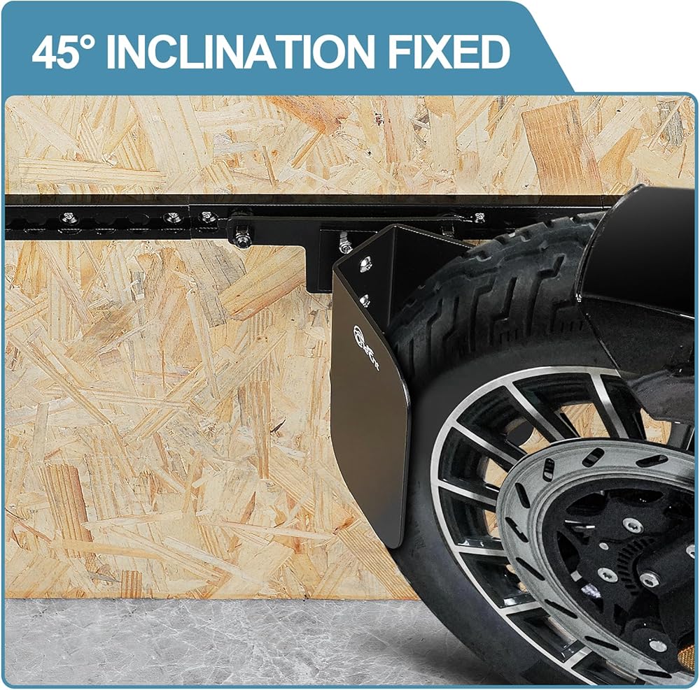 4. 【سهلة الاستخدام】: استخدم عوارض عجلة الدراجة النارية لتأمين دراجتك النارية على سكة L-Track قم بتركيب دراجات متعددة في المساحات الضيقة مع تثبيت عجلة الدراجة بزاوية 90 درجة. حافظ على تنظيم دراجتك وسهولة الوصول إليها عن طريق تثبيت حواجز الإطارات الأمامية للدراجة النارية بزاوية 45 درجة.