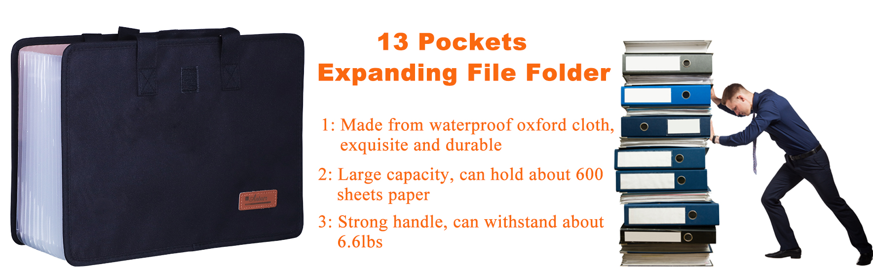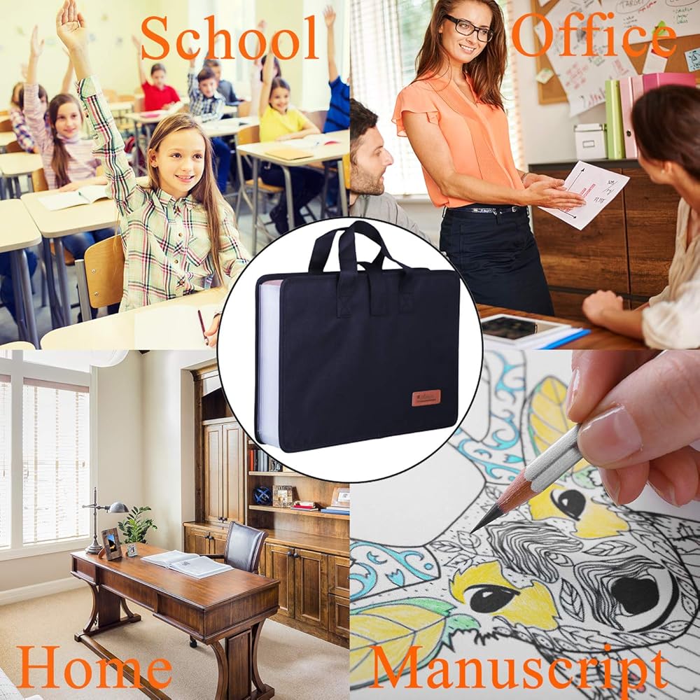 Antner 13 جيوب توسيع مجلد المستندات منظم المستندات مع مقبض، سعة كبيرة منظم الملفات الأكورديان المحمولة مجلدات الملفات بحجم A4 للمكتب أو الأعمال أو المدرسة أو المنزل، أسود