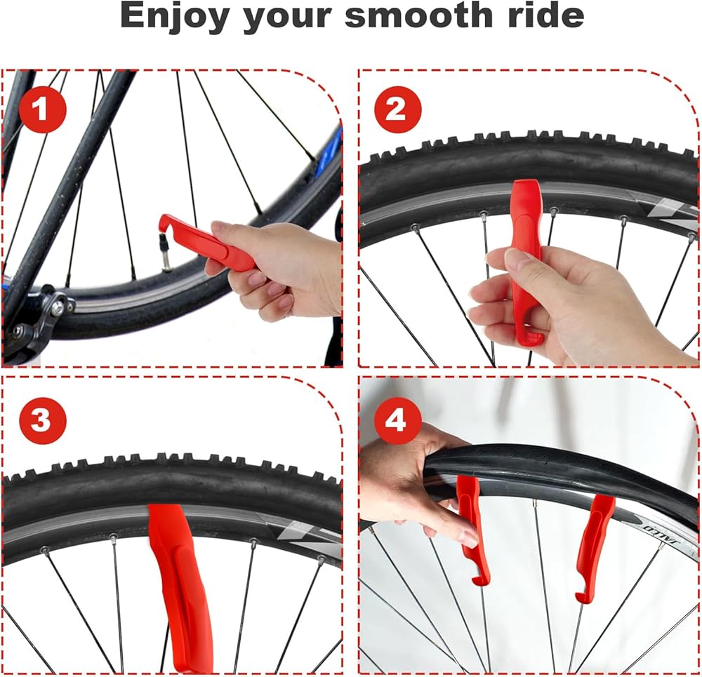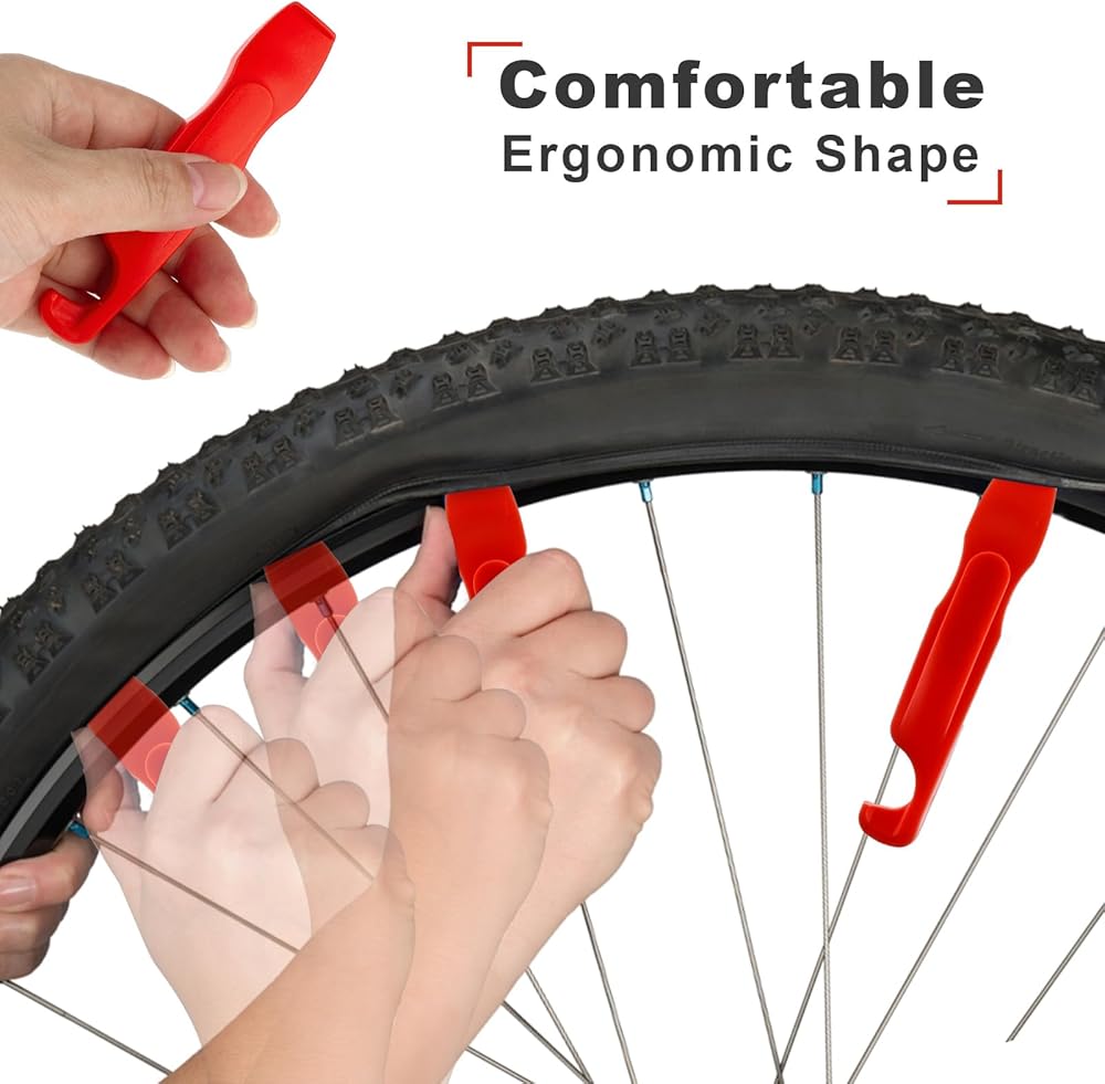 • 【خاصة لإصلاح الإطارات】تتناسب رافعات إطارات الدراجة بشكل وثيق مع محيط إطار الدراجة وسهلة الإزالة للإصلاح والاستبدال. لقد قمنا بتطوير هذه الروافع من خلال العديد من الاختبارات للتأكد من قدرتها على إزالة الإطارات المختلفة من العجلة.