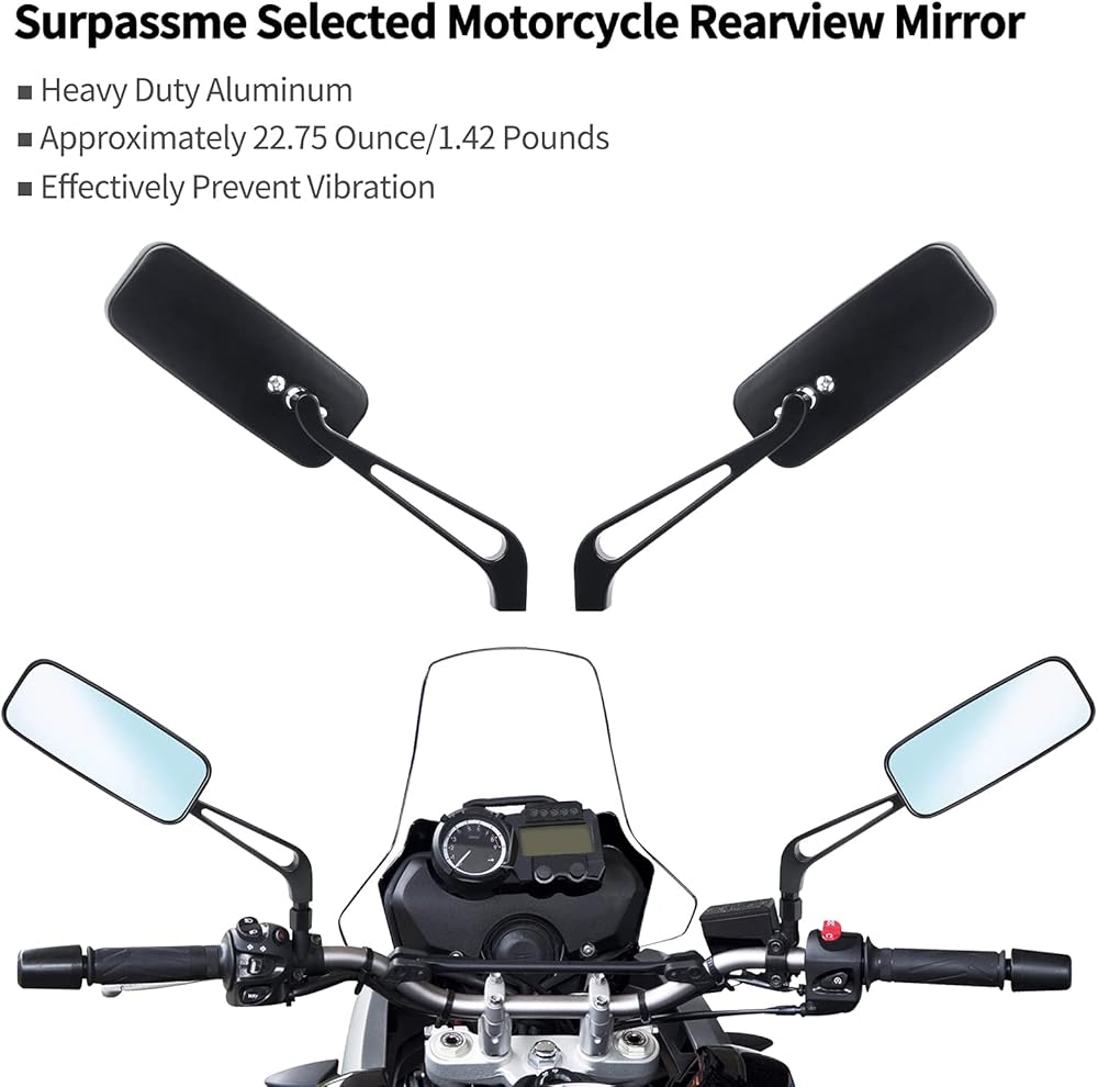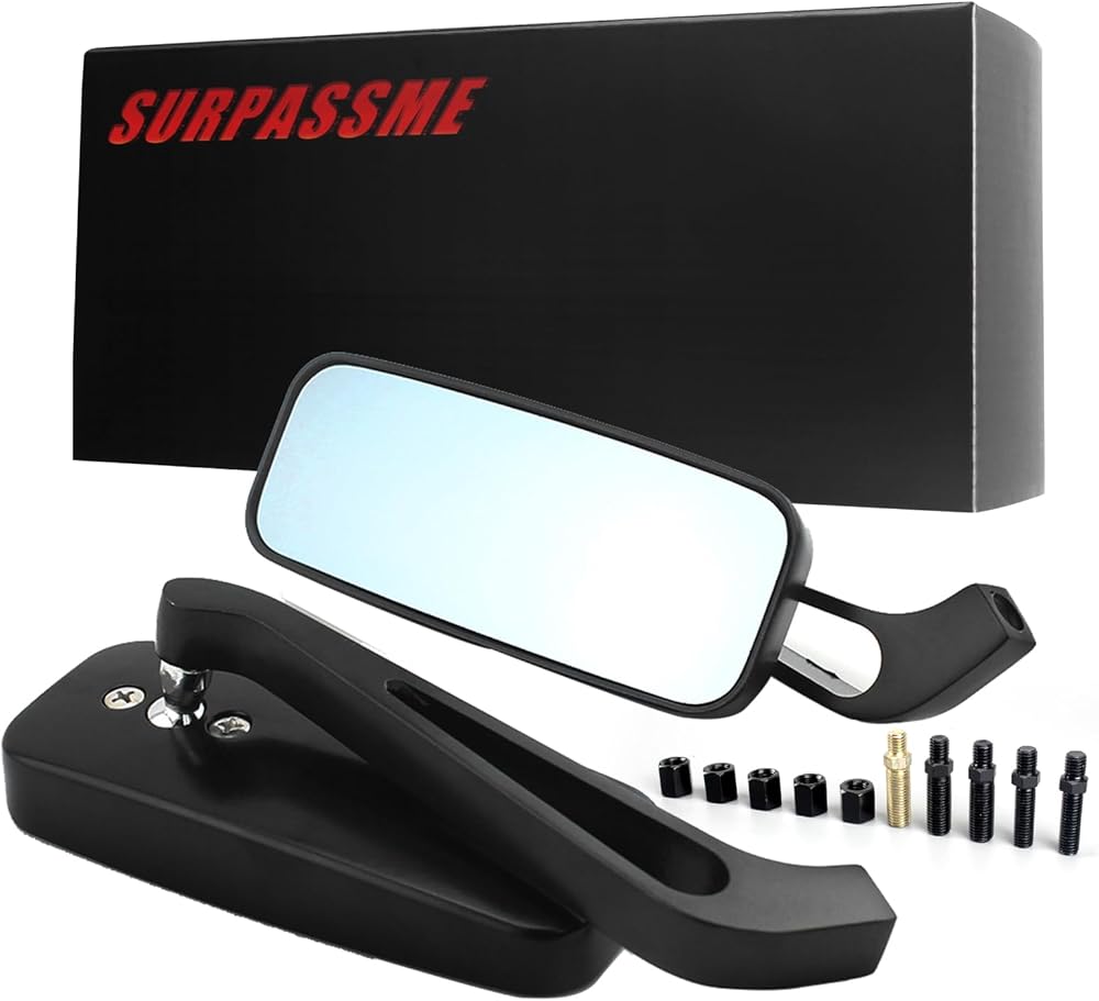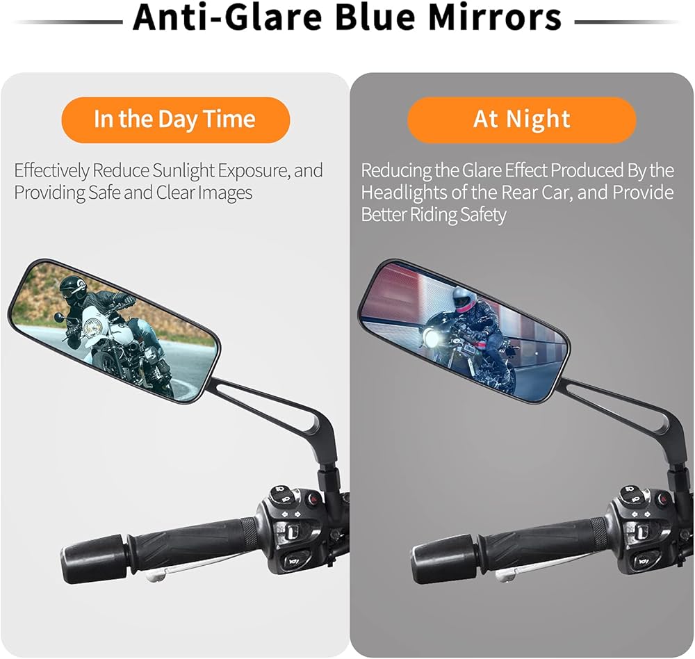 زوج من مرآتين أزرقتين للرؤية الخلفية للدراجة النارية من الألومنيوم الأسود عالي الجودة وهما أكثر أمانًا من المرايا العادية