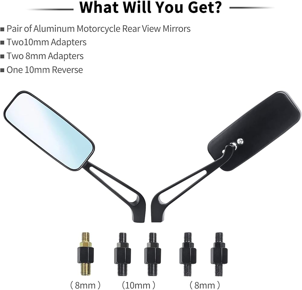 يحتوي كل صندوق مرايا على مرآة واحدة على اليسار ومرآة على اليمين؛ محولين مقاس 10 مم؛ محولان مقاس 8 مم ومحول واحد عكسي مقاس 10 مم؛