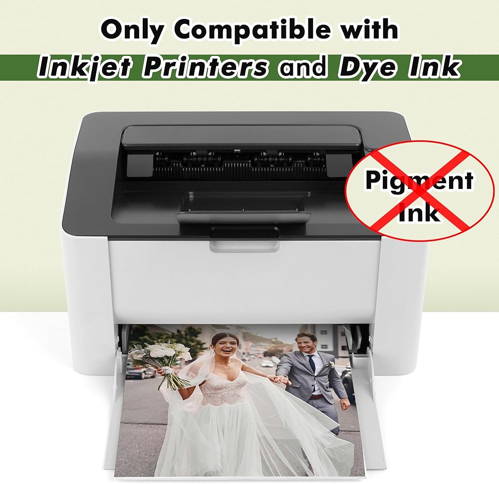 الطابعات المتوافقة: مثالية مع الطابعات النافثة للحبر باستخدام حبر الصبغ، تجفيف فوري، بدون تلطيخ، بدون تلطيخ