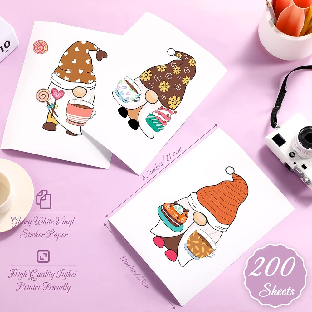 محتوى غني: سوف تحصل على 200 ورقة من ورق ملصقات الفينيل القابل للطباعة، ومحتوى غني وكمية كافية لتلبية احتياجاتك في الاستخدام والاستبدال؛ يمكنك أيضًا مشاركتها مع أصدقائك أو أفراد عائلتك