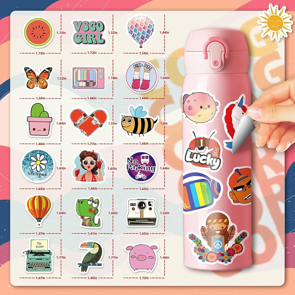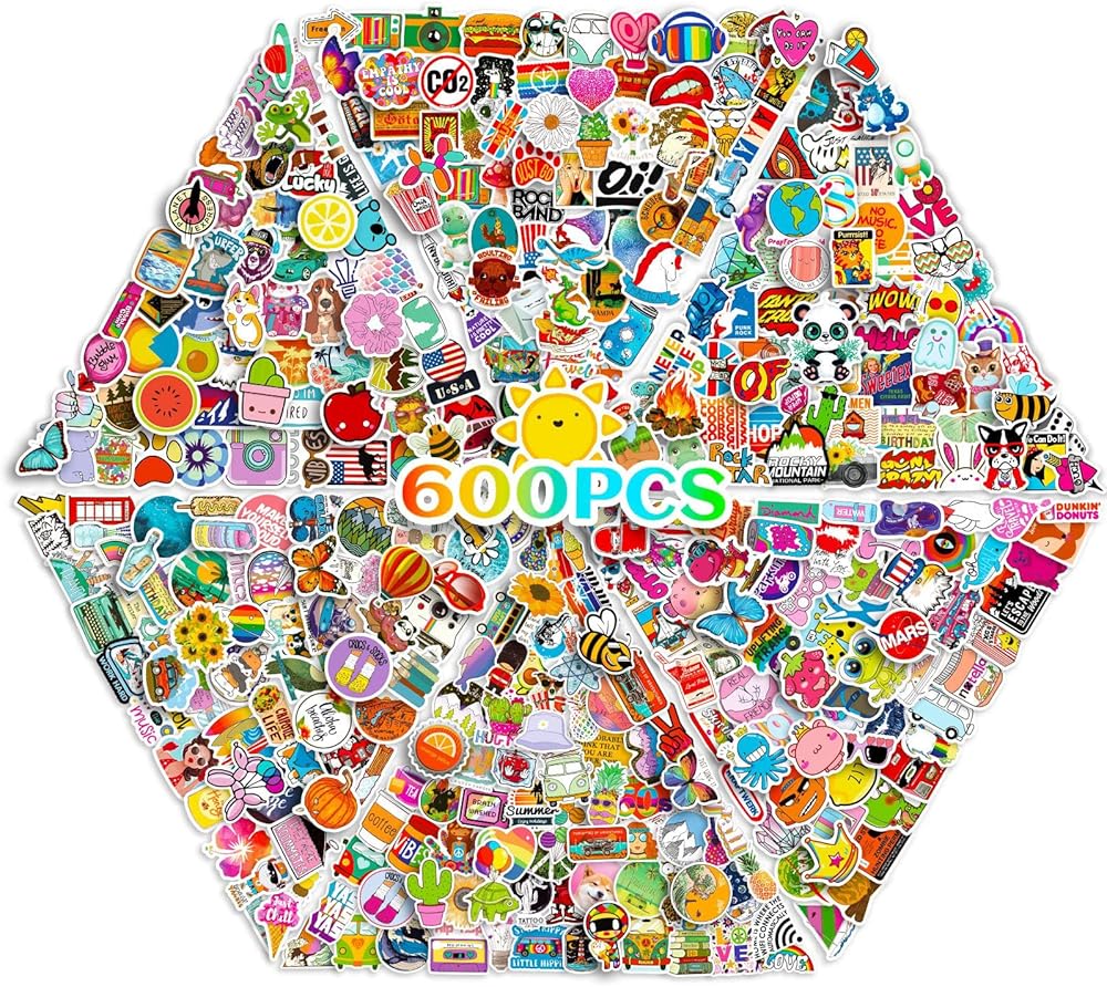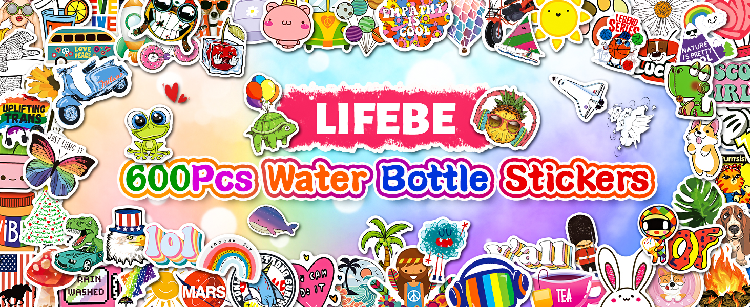 LIFEBE 600 قطعة من ملصقات زجاجات المياه الرائعة للمراهقين، عبوات ملصقات متنوعة من الفينيل المقاوم للماء للأطفال والأولاد والبنات والبالغين، ملصقات كبيرة لأجهزة الكمبيوتر المحمول وألواح التزلج والكمبيوتر