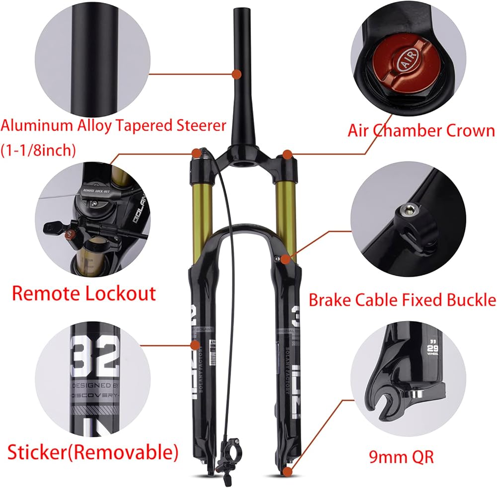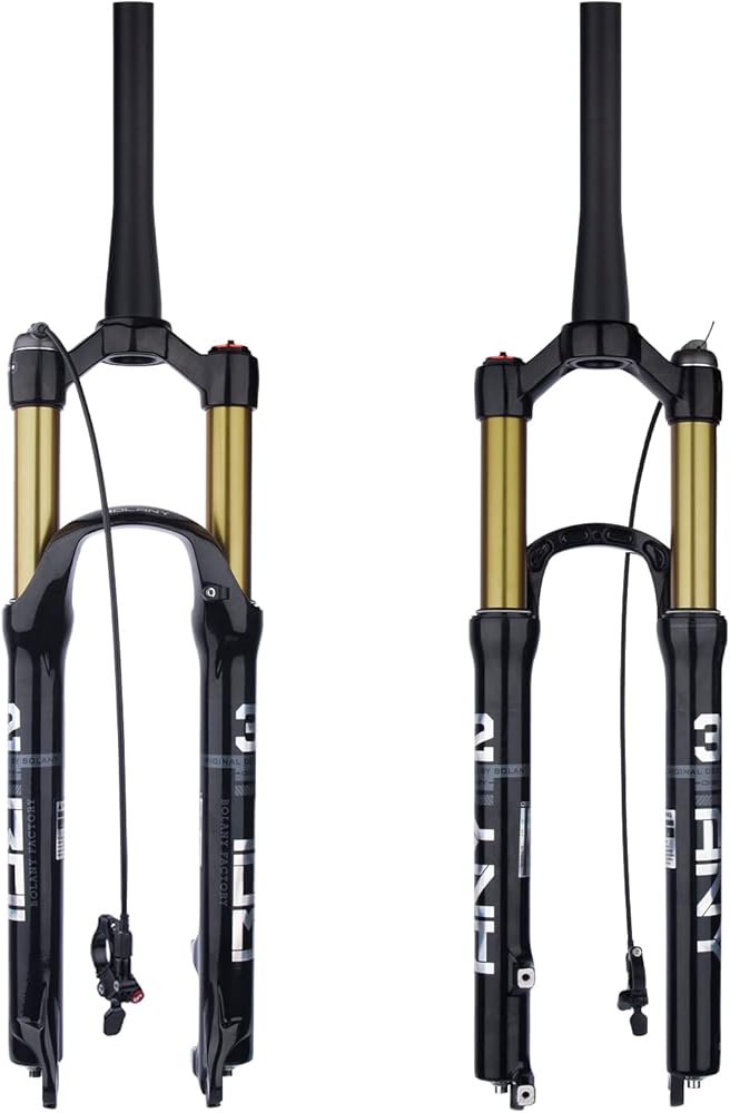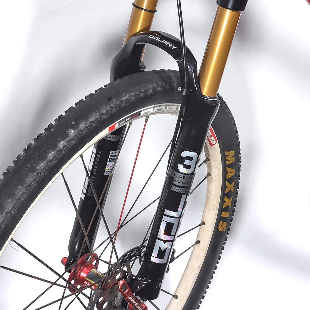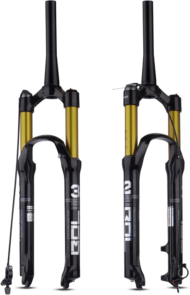 【الخامة: شوكة تعليق الدراجة الجبلية، مصنوعة من سبائك الألومنيوم عالية الجودة + سبيكة المغنيسيوم، قوية ومتينة، تحكم ثابت في دراجتك، تلعب دورًا وقائيًا في ركوب الدراجات في الهواء الطلق.