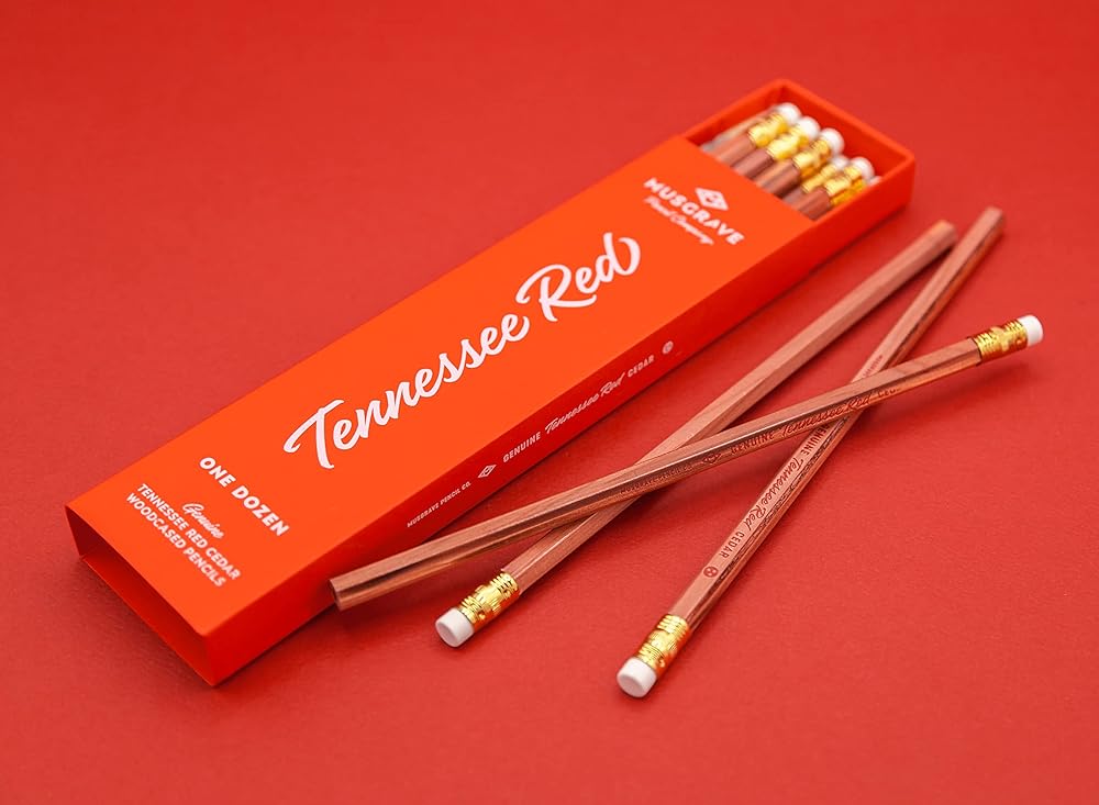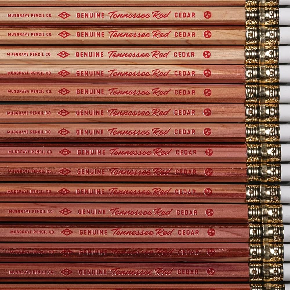 قلم رصاص Musgrave Pencil Company Tennessee Red Pencil، جرافيت مغلف بالخشب #2 HB ناعم، غير مشحذ، قلم رصاص من خشب الأرز الأحمر الشرقي، 12 عبوة في صندوق