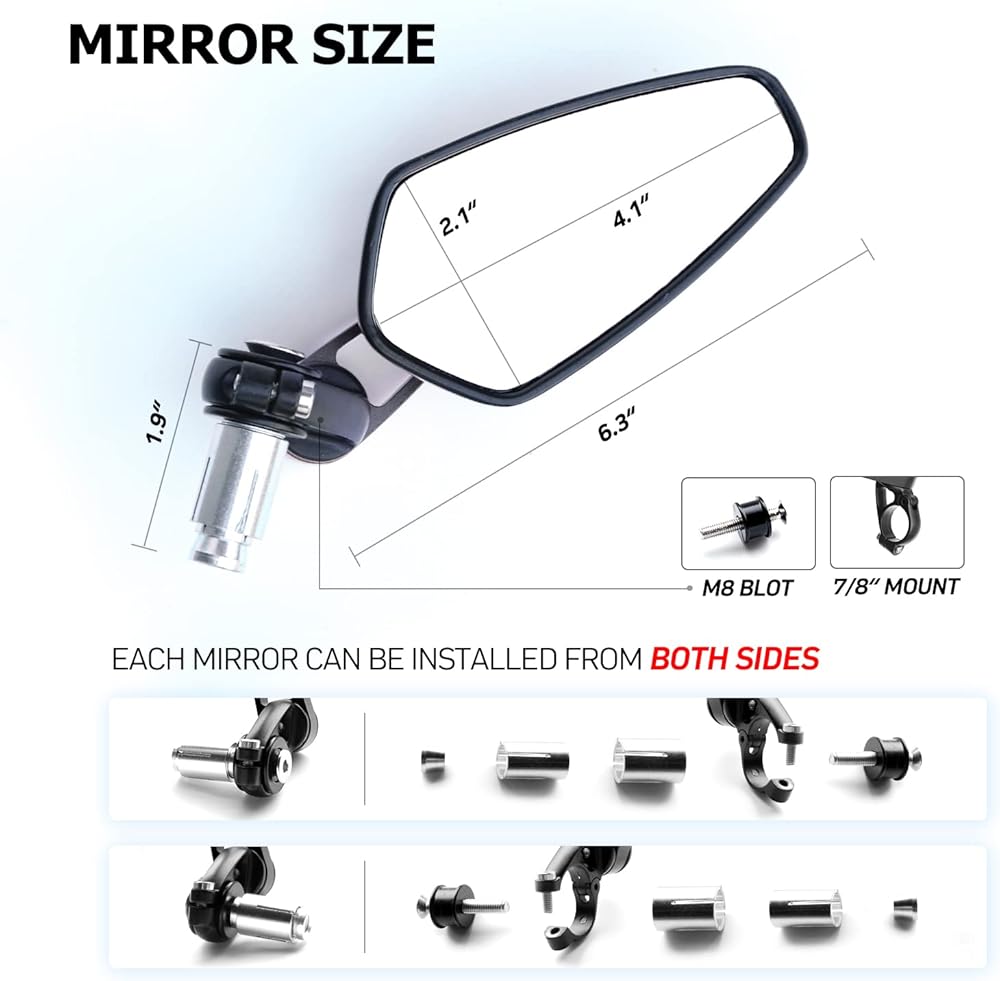 • ▲مرايا عالمية لمقود مجوف مقاس 7/8 بوصة▼ حامل مرآة جانبية مقاس 7/8 بوصة مع الأجزاء اللازمة مناسب للدراجات النارية والدراجات بما في ذلك: هوندا، ياماها، كاواساكي، دوكاتي، سوزوكي، هارلي ديفيدسون، أبريليا، بي إم دبليو، كافيه ريسر، Rizoma، crg، سكوتر، دراجة ترابية، دراجة رباعية، عربة ثلجية. (نصائح: غير متوافق مع Honda Grom. نعرض النماذج المطابقة على صفحة الوصف التفصيلي A+. يرجى التحقق من الطراز الخاص بك قبل الشراء في حالة وجود أخطاء في الشراء.)