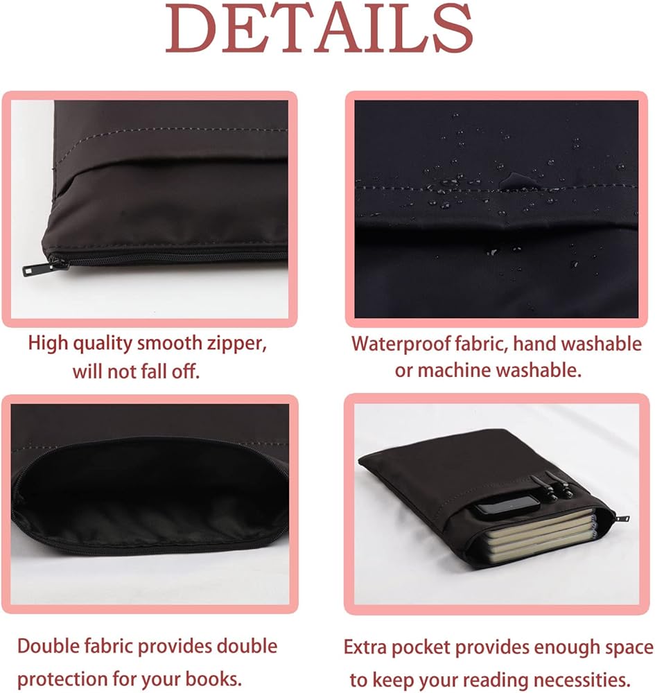 Premium Material: Our book sleeve is made of combined fabric. Waterproof material that will protect for any items you put inside. It's easily hand washable for repeated use.